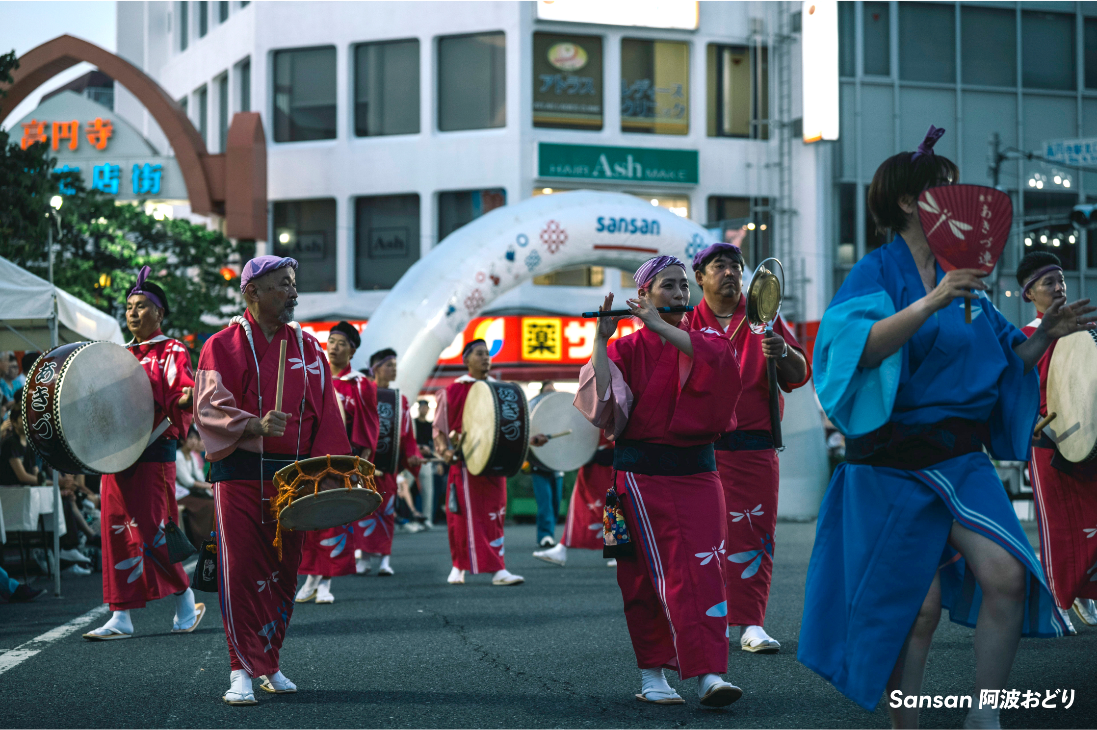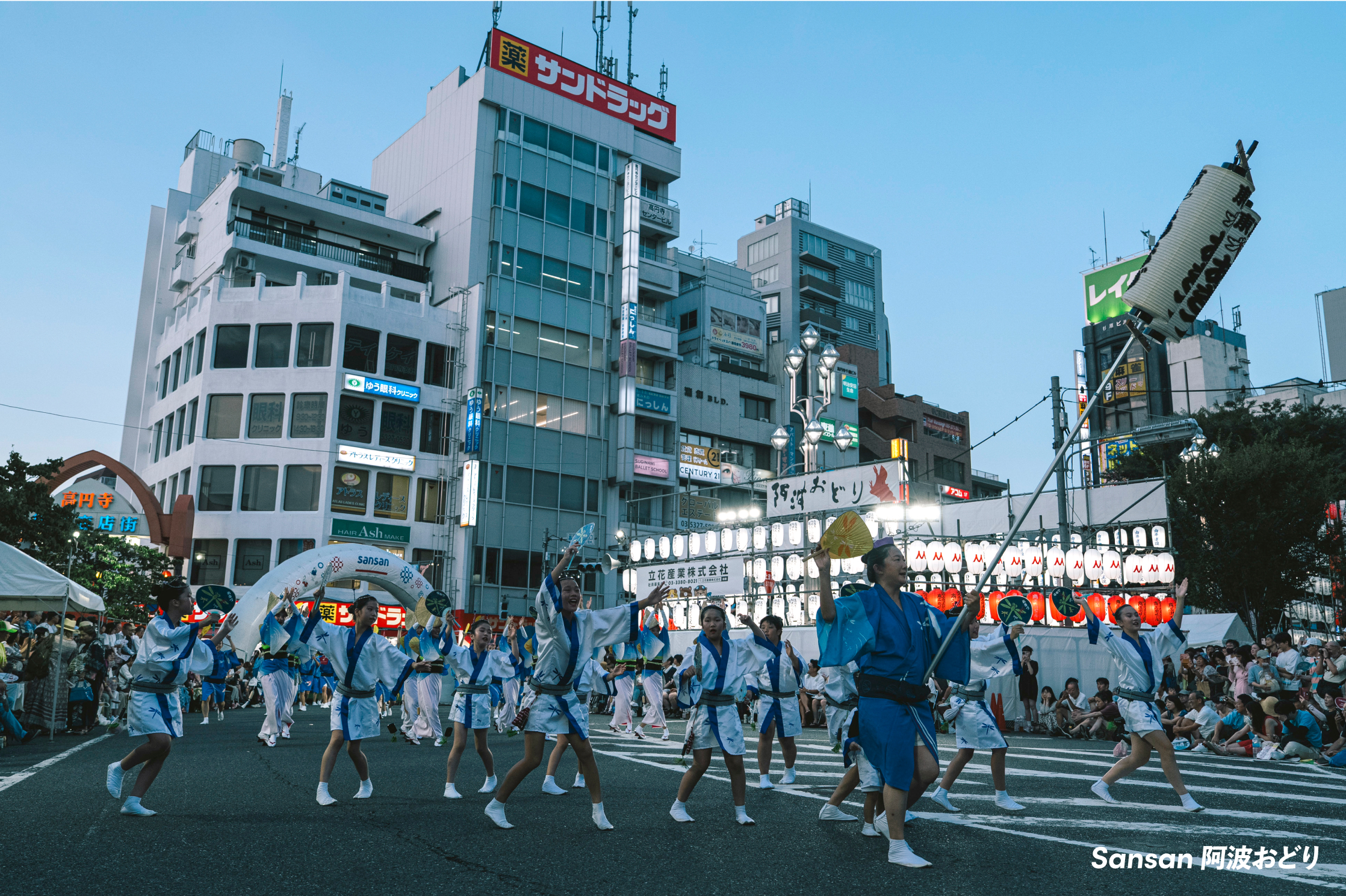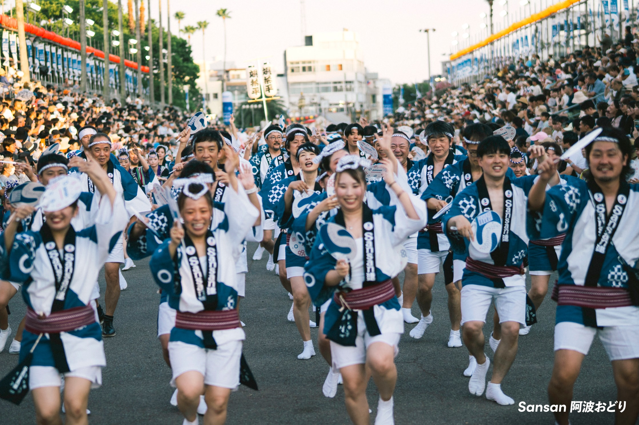 この阿波おどりの舞台から生まれる出会いと熱気を、Sansanは、共に踊る阿呆として支え続けていきます。