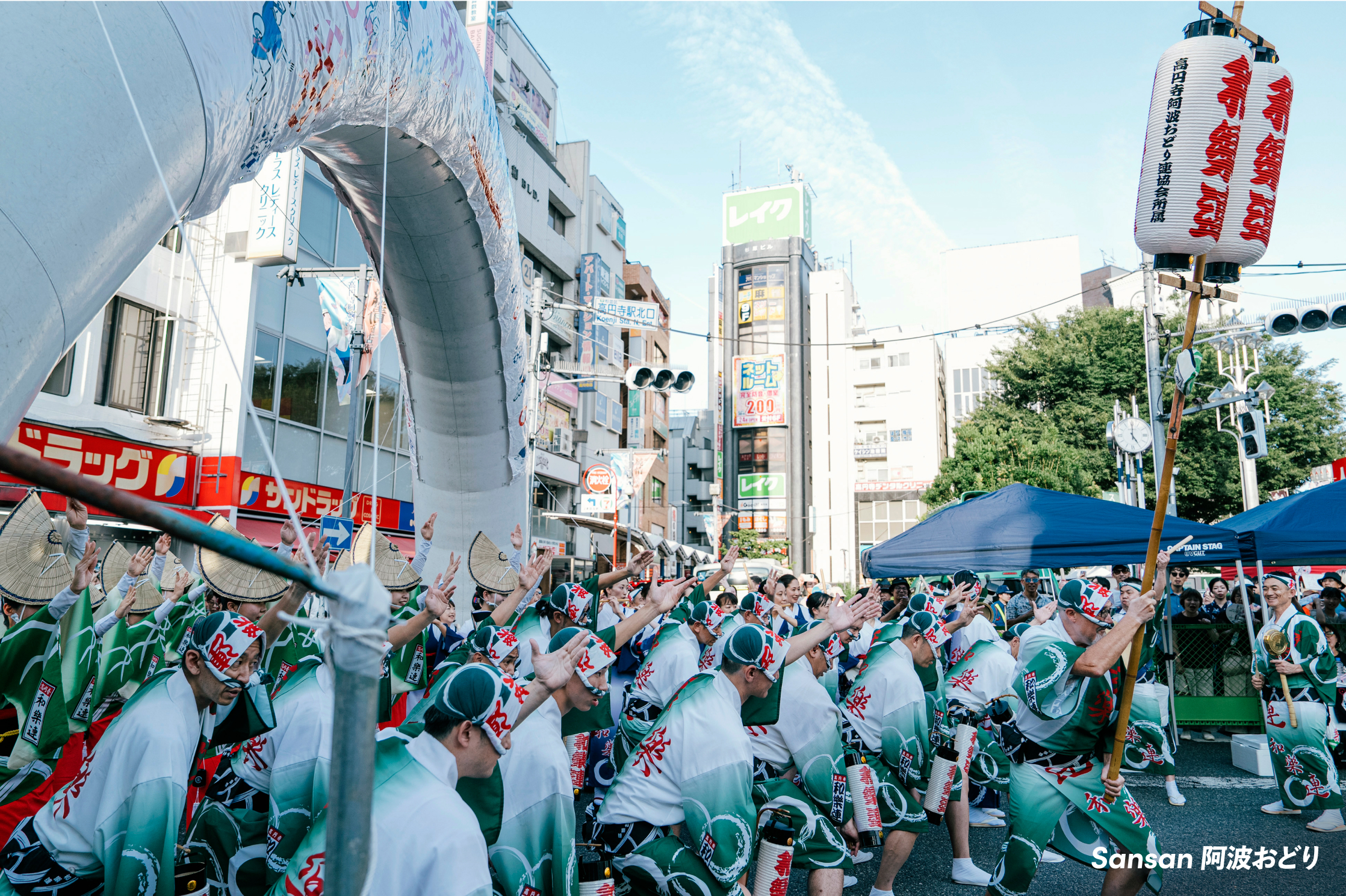 2025年8月に開催された「第66回東京高円寺阿波おどり」に、Sansanは協賛企業として参加。演舞場の一つである「純情演舞場」にバルーンアーチを設置するほか、ユーザーや地域関係者を招いた観覧企画も実施。出会いの熱気に満ちたこの場を、文化とビジネスが交差する新たな出会いの舞台として後押ししました。