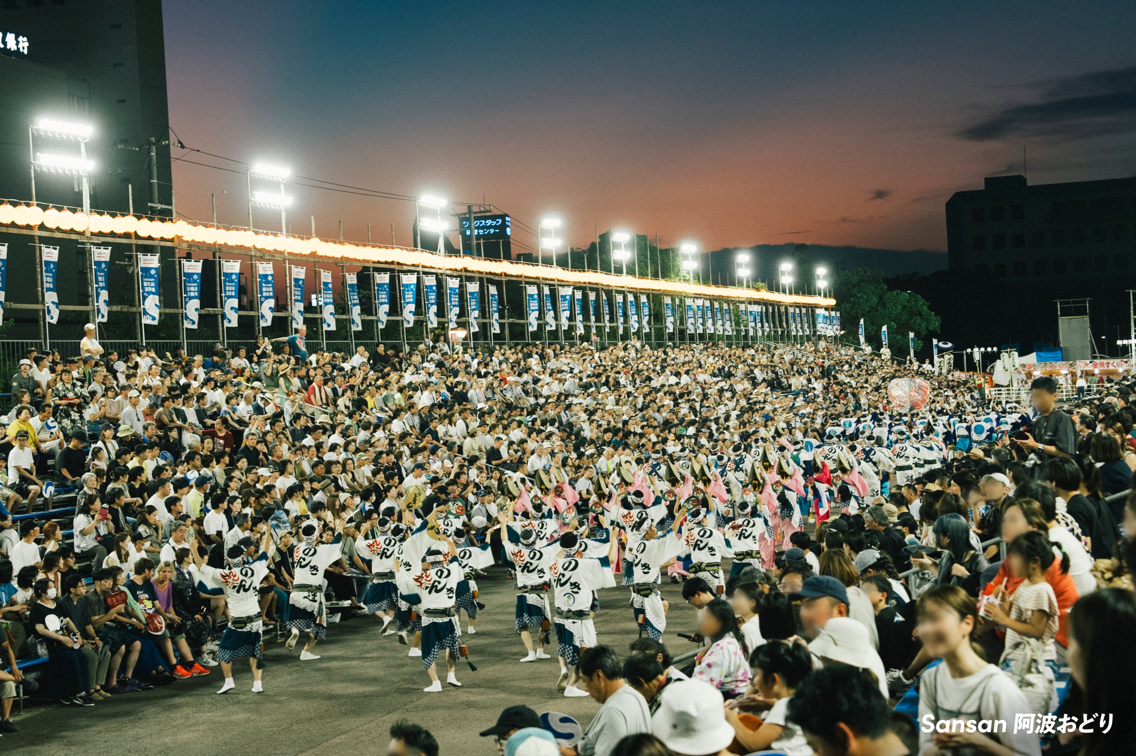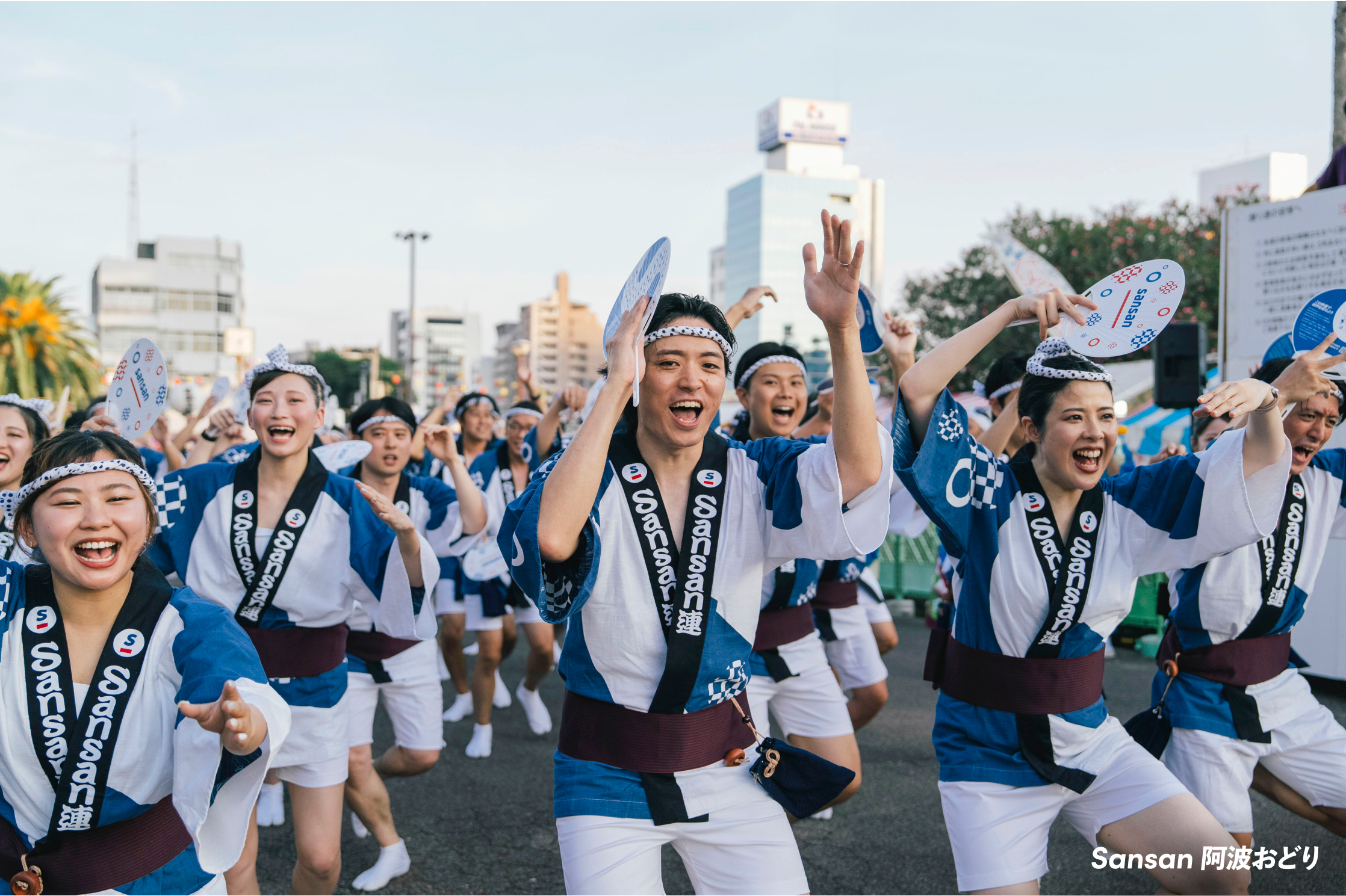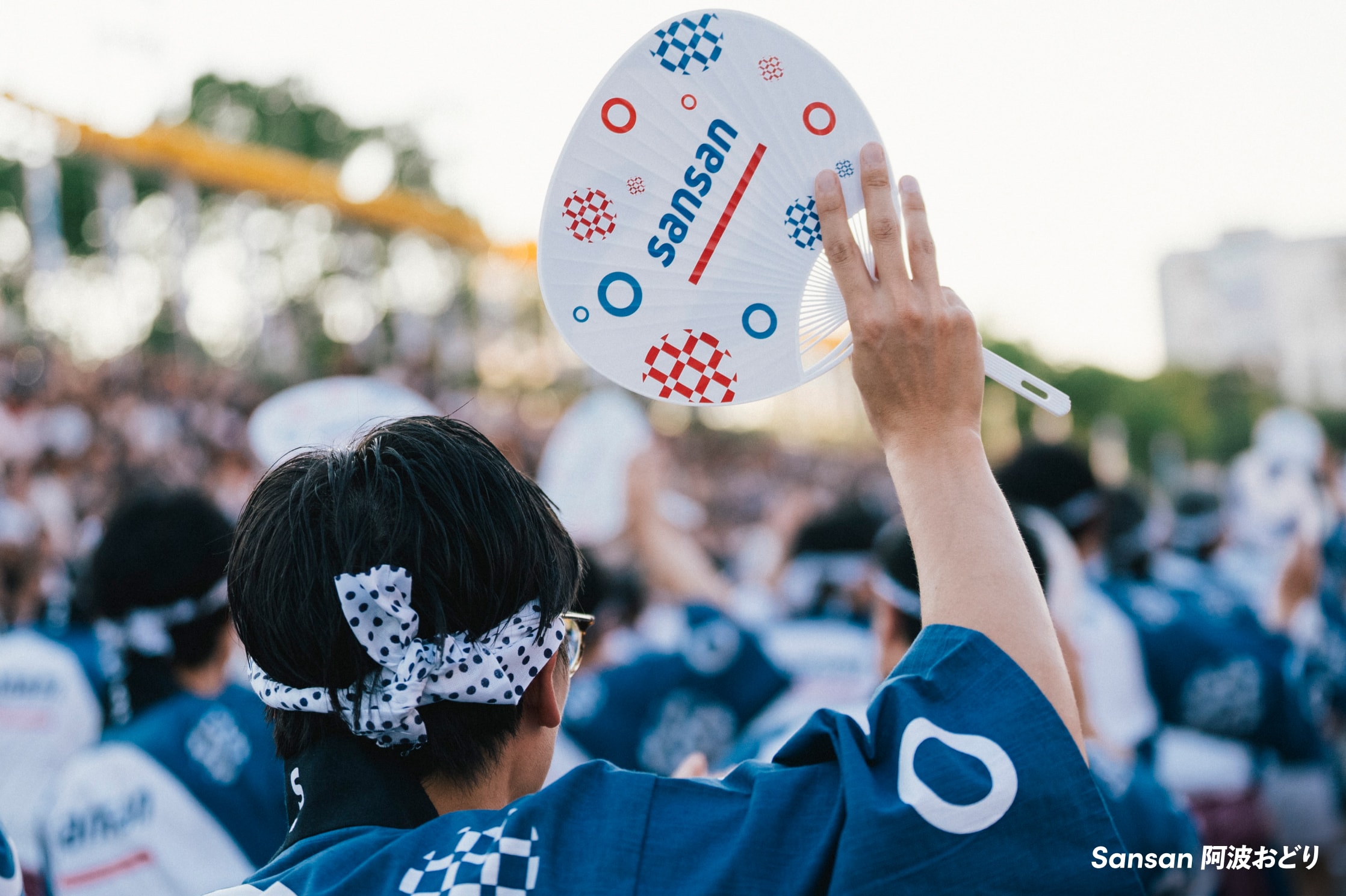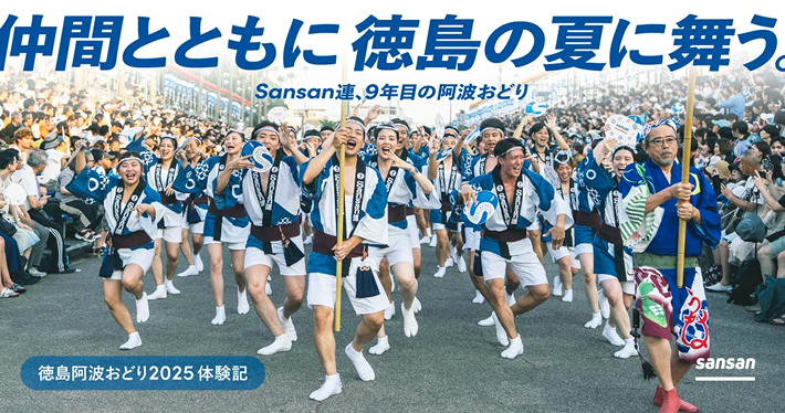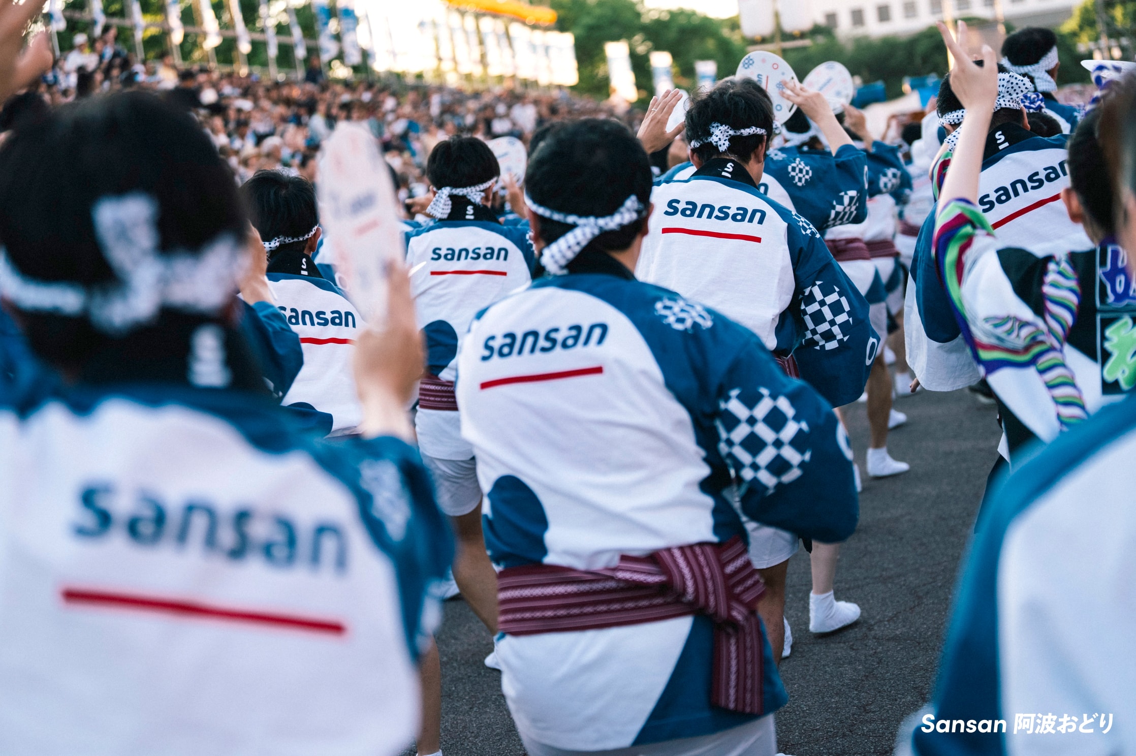 2024年8月、Sansanは徳島市で開催された「2024阿波おどり」に協賛し、有料演舞場の一つである「藍場浜演舞場」のネーミングライツを取得。会場を「Sansan藍場浜演舞場」と命名し、のぼりやうちわ、法被などのオリジナルクリエイティブを展開しました。これにより、地域の伝統芸能を支援するとともに、徳島とのつながりをさらに深めています。