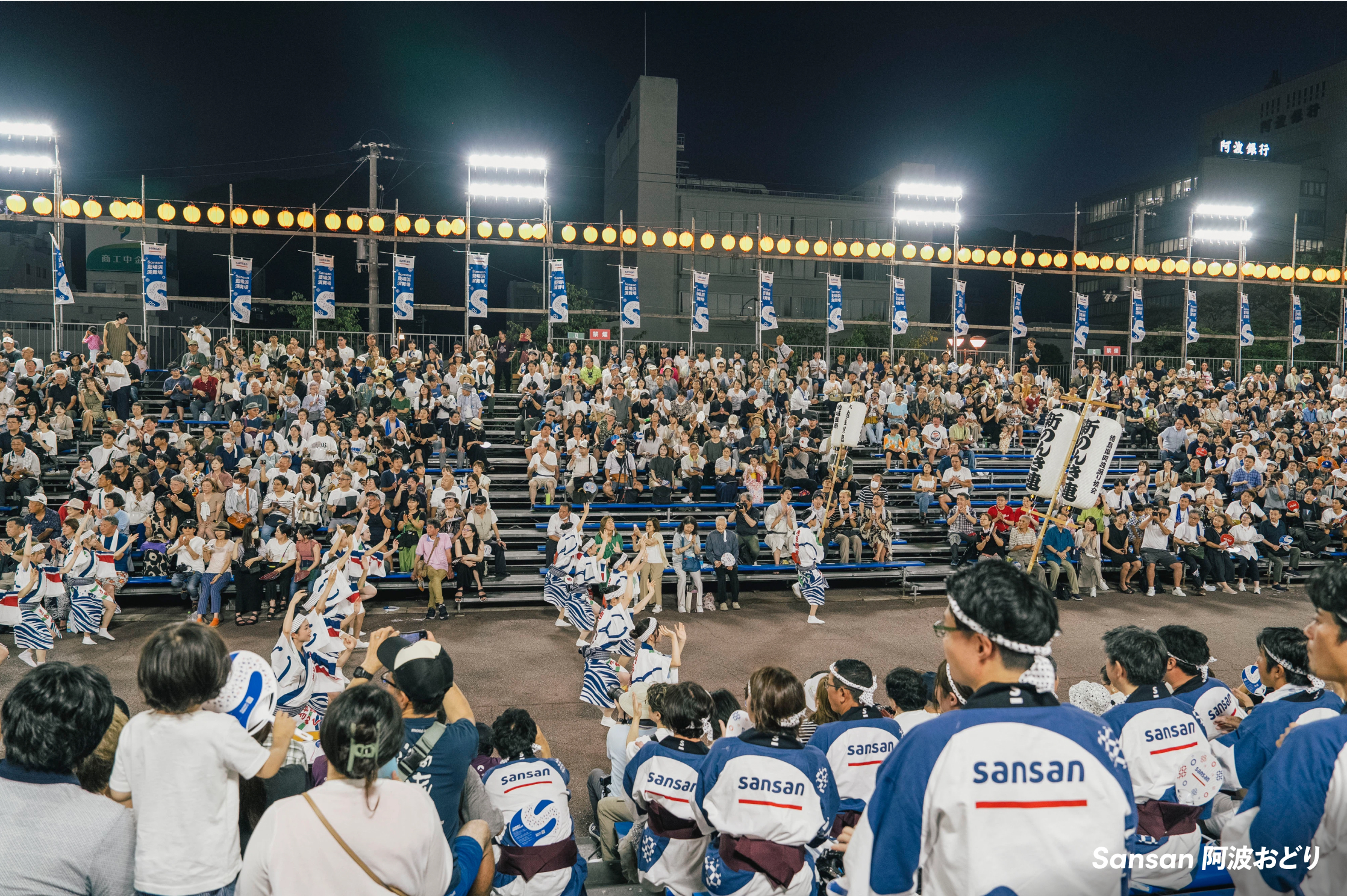 本場・徳島で開催された「2025阿波おどり」にて、Sansanは昨年に続き「藍場浜演舞場」のネーミングライツを取得。会場を「Sansan藍場浜演舞場」として開設し、伝統文化の担い手や来場者とともに、出会いが生まれる舞台を支えました。さらに、開催期間中には地域企業やユーザーを招いた「Sansan Innovation Tour in 徳島」も実施。伝統とビジネス、地域と企業をつなぐ、新たな出会いを創出しました。