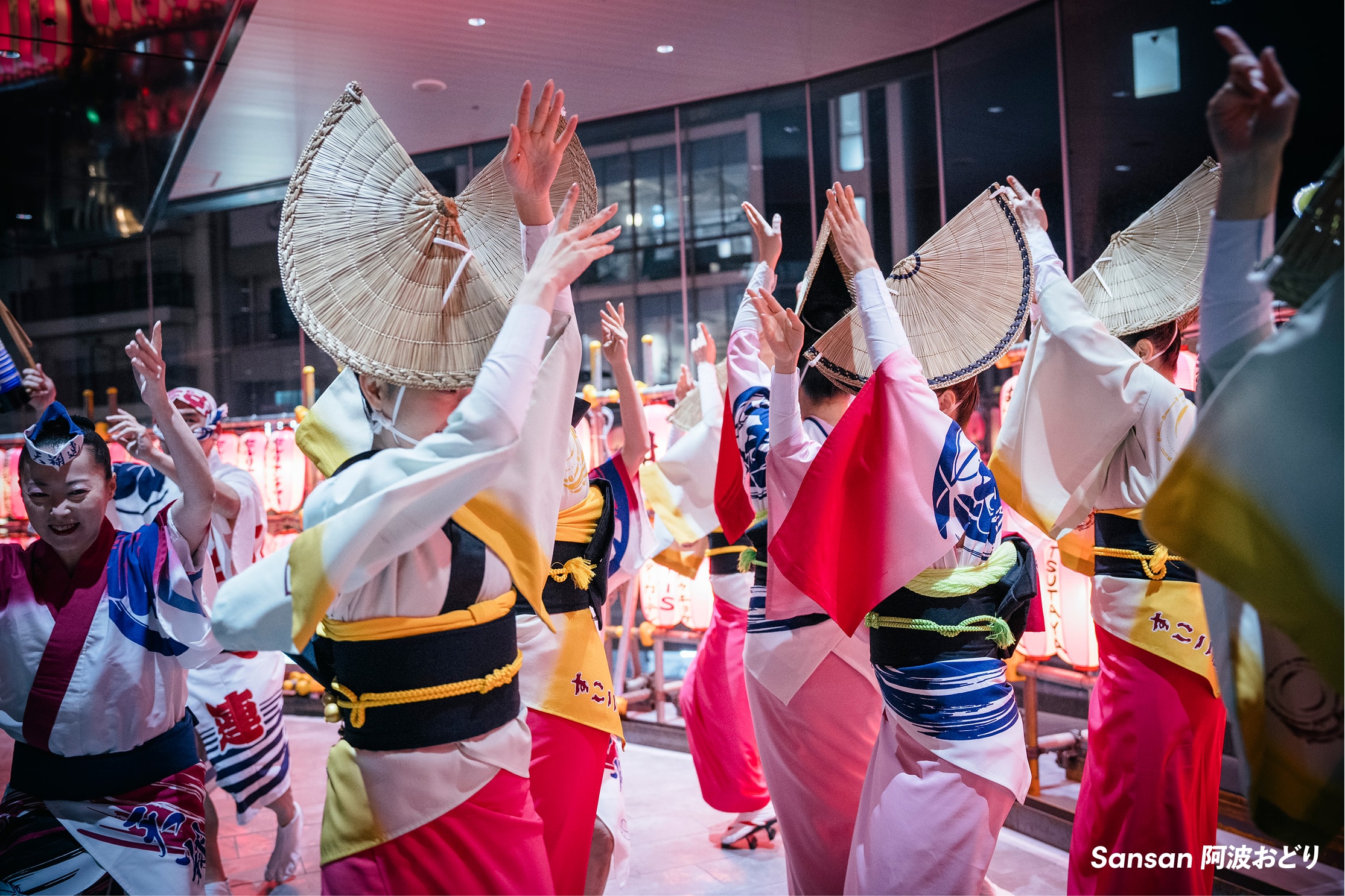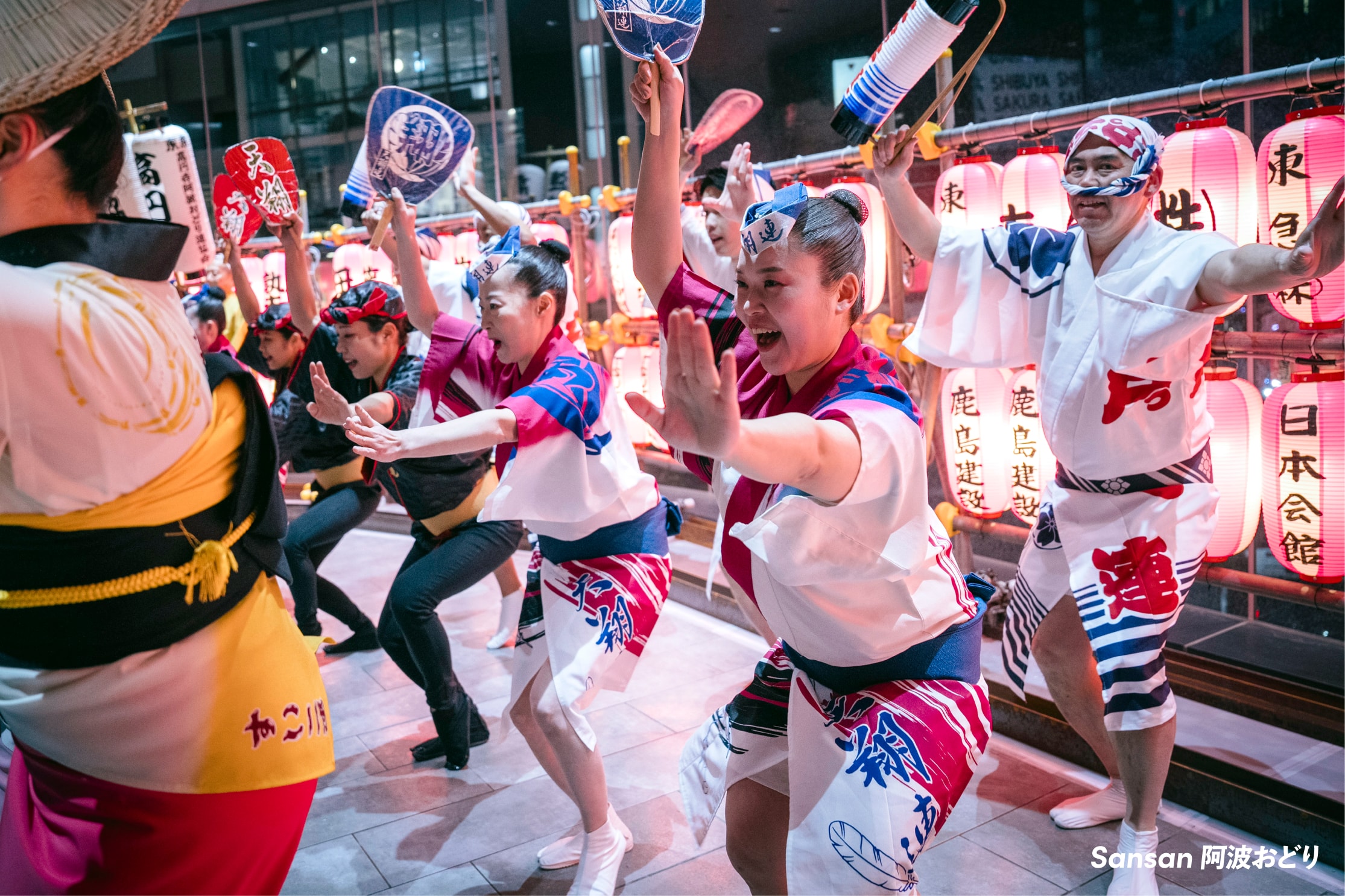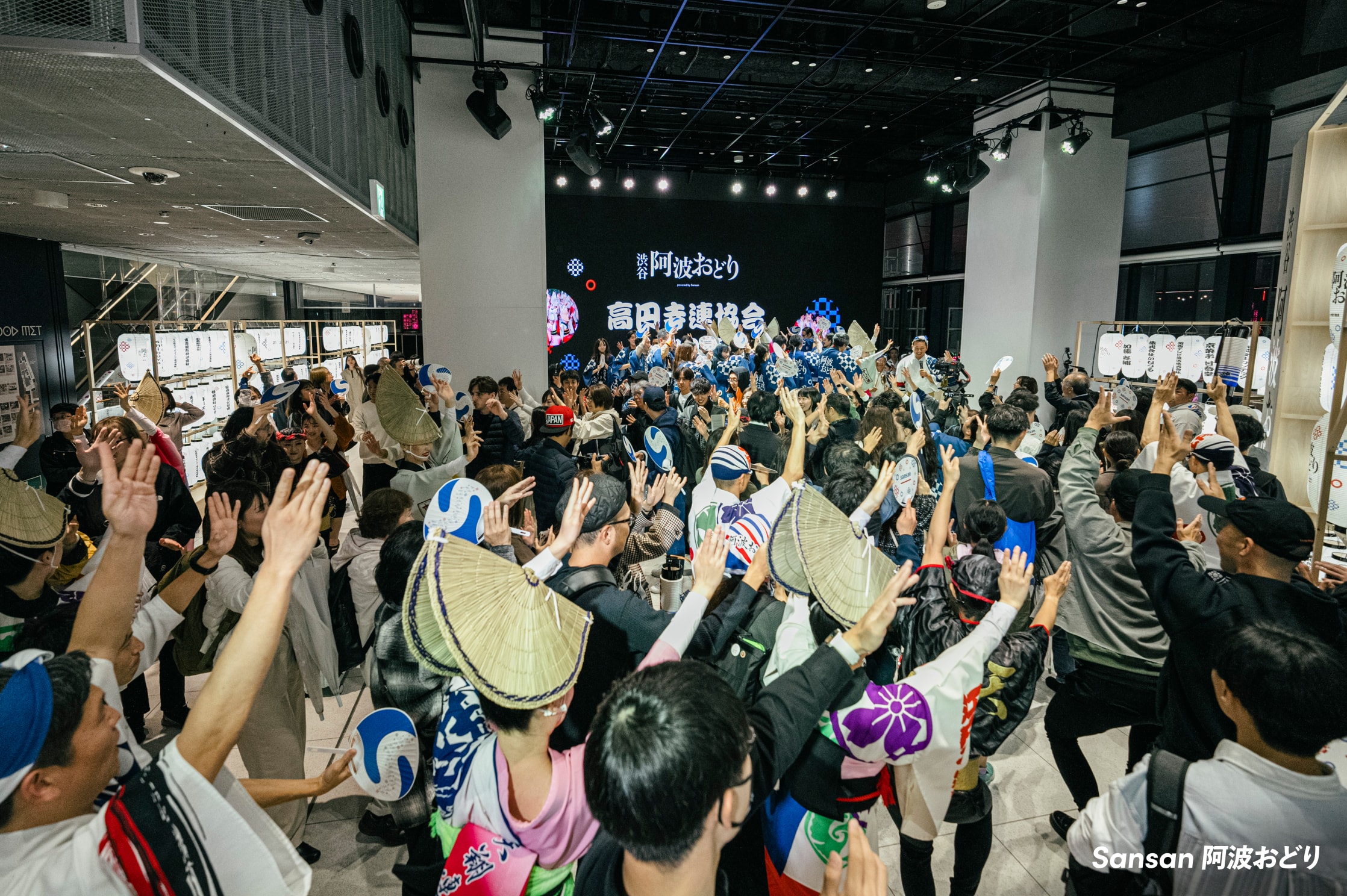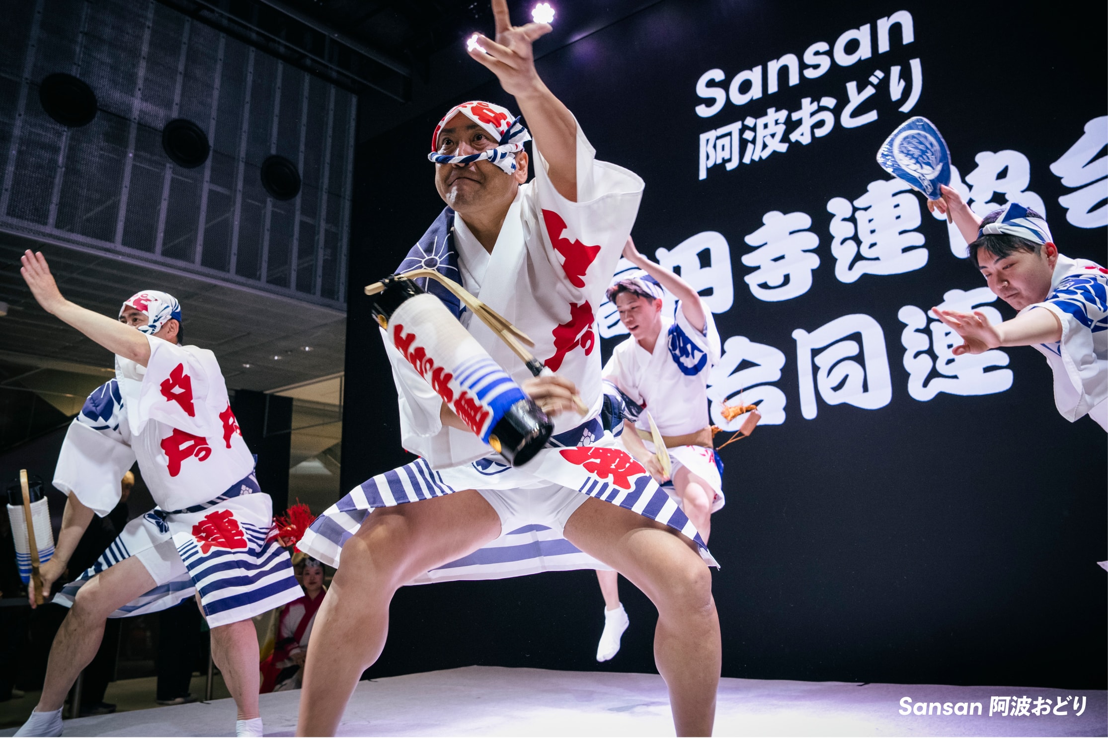 2024年11月、Sansanは本社移転先である渋谷サクラステージの開業を祝い、「渋谷阿波おどり powered by Sansan」を開催。日本三大阿波おどりである、徳島・高円寺・南越谷からそれぞれの選抜連/合同連が演舞を披露するほか、家族で楽しめる縁日や渋谷サクラステージ内でのフードコートとの連動企画を実施し、渋谷のまちに新たなにぎわいと出会いを創出しました。