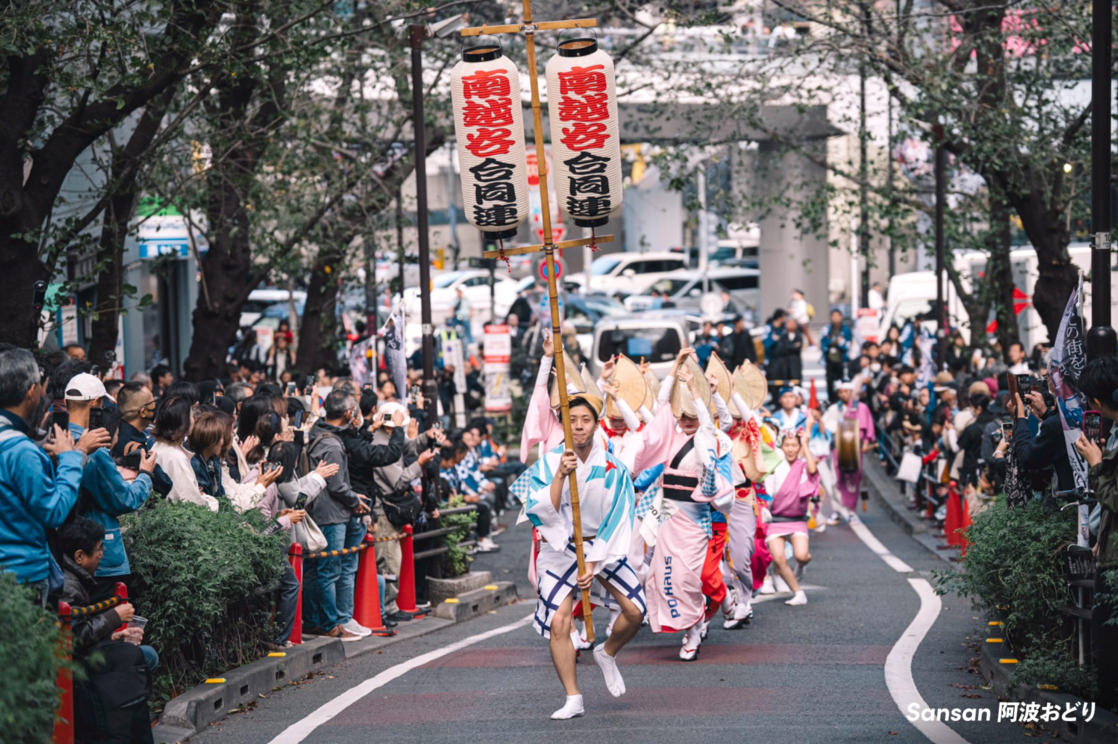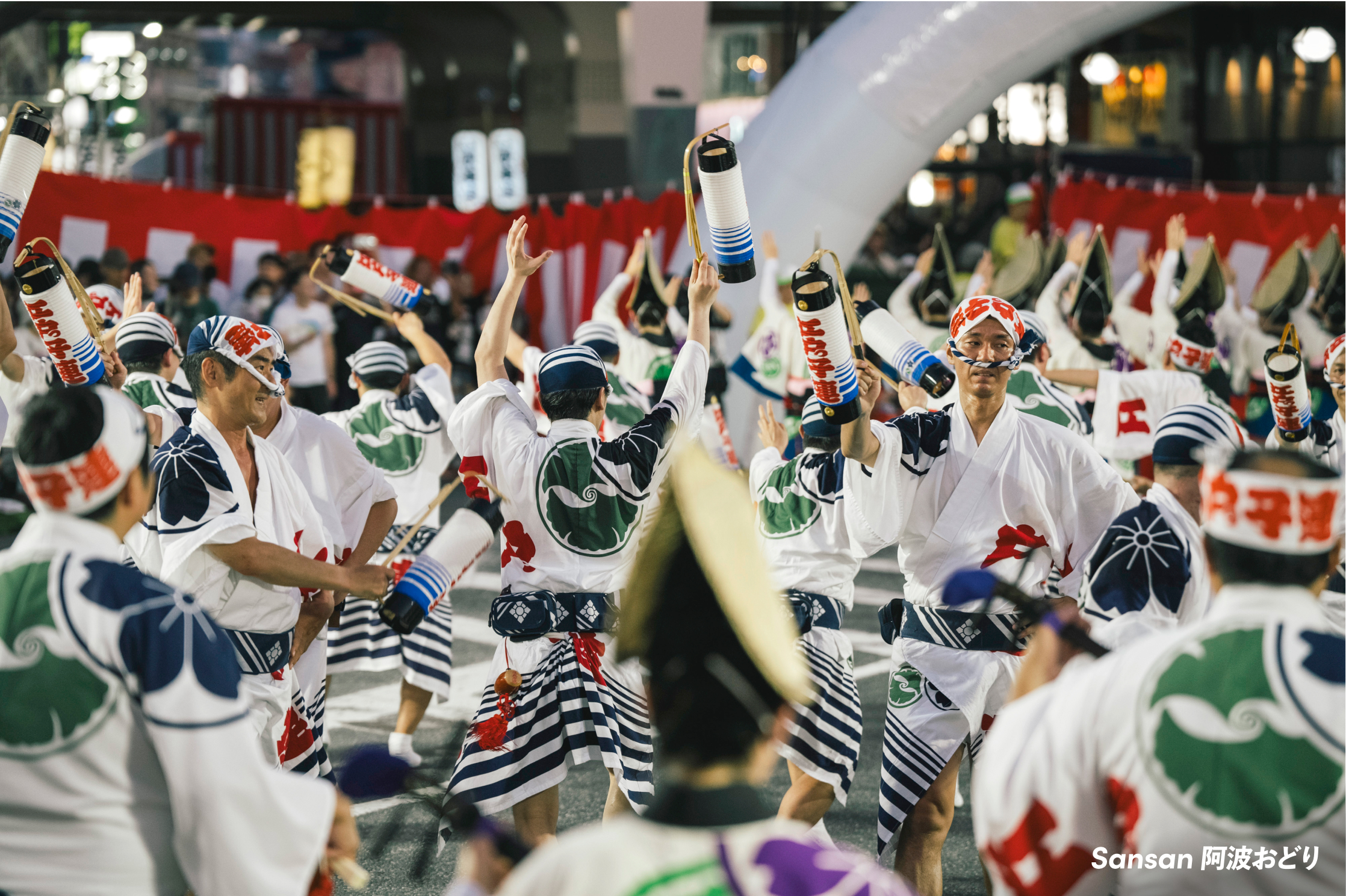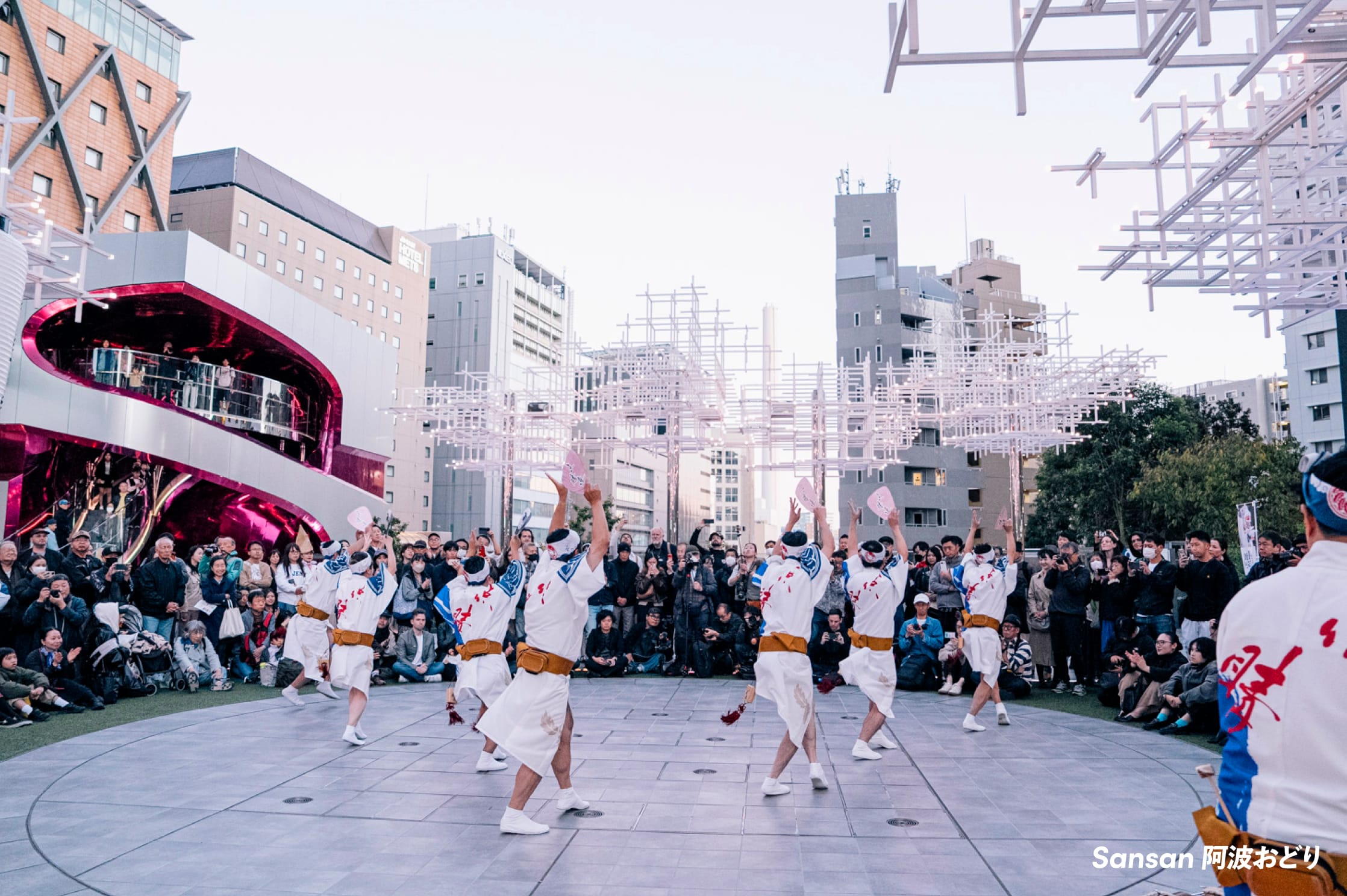 2024年11月、Sansanは本社移転先である渋谷サクラステージの開業を祝い、「渋谷阿波おどり powered by Sansan」を開催。日本三大阿波おどりである、徳島・高円寺・南越谷からそれぞれの選抜連/合同連が演舞を披露するほか、家族で楽しめる縁日や渋谷サクラステージ内でのフードコートとの連動企画を実施し、渋谷のまちに新たなにぎわいと出会いを創出しました。