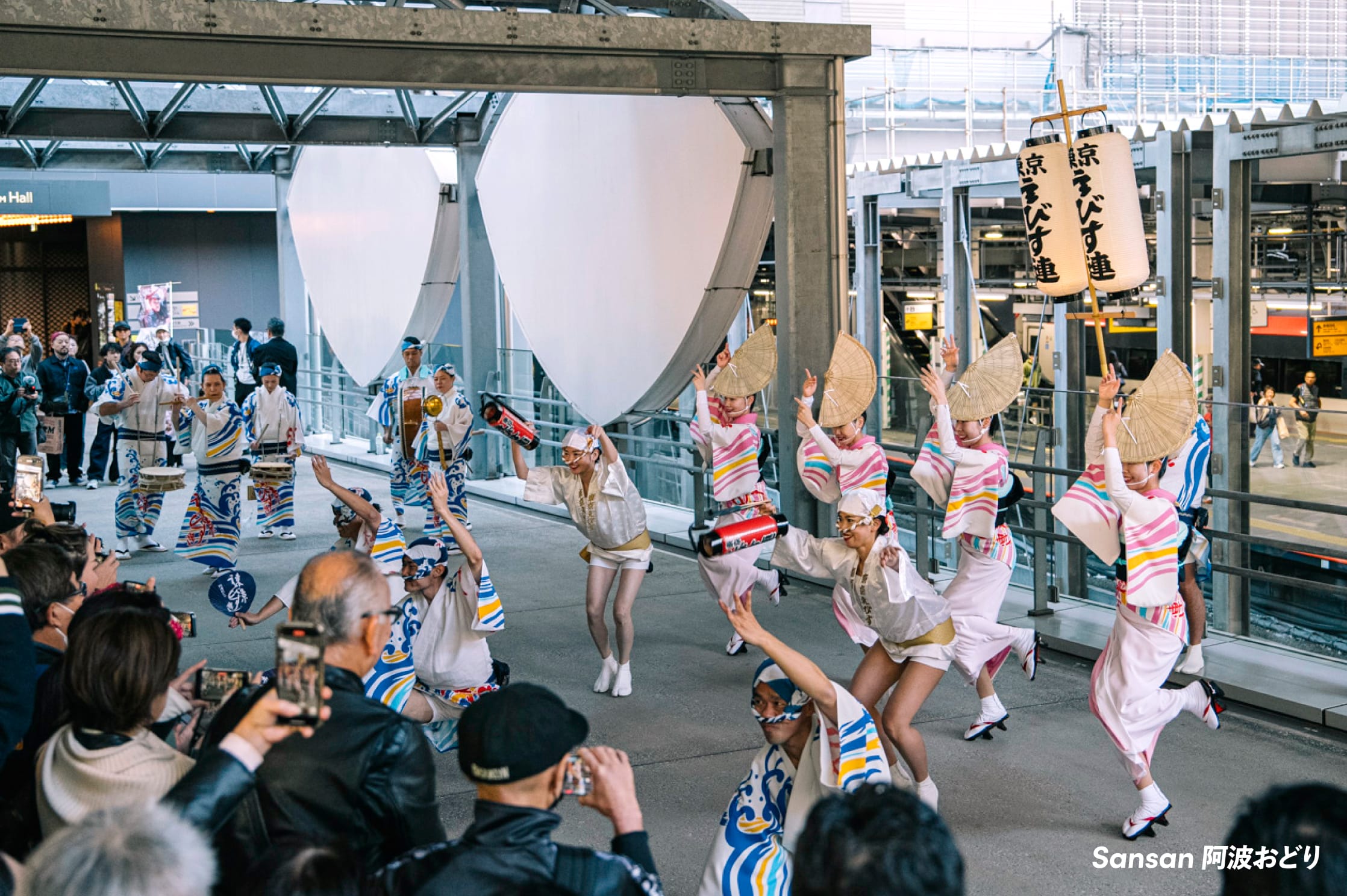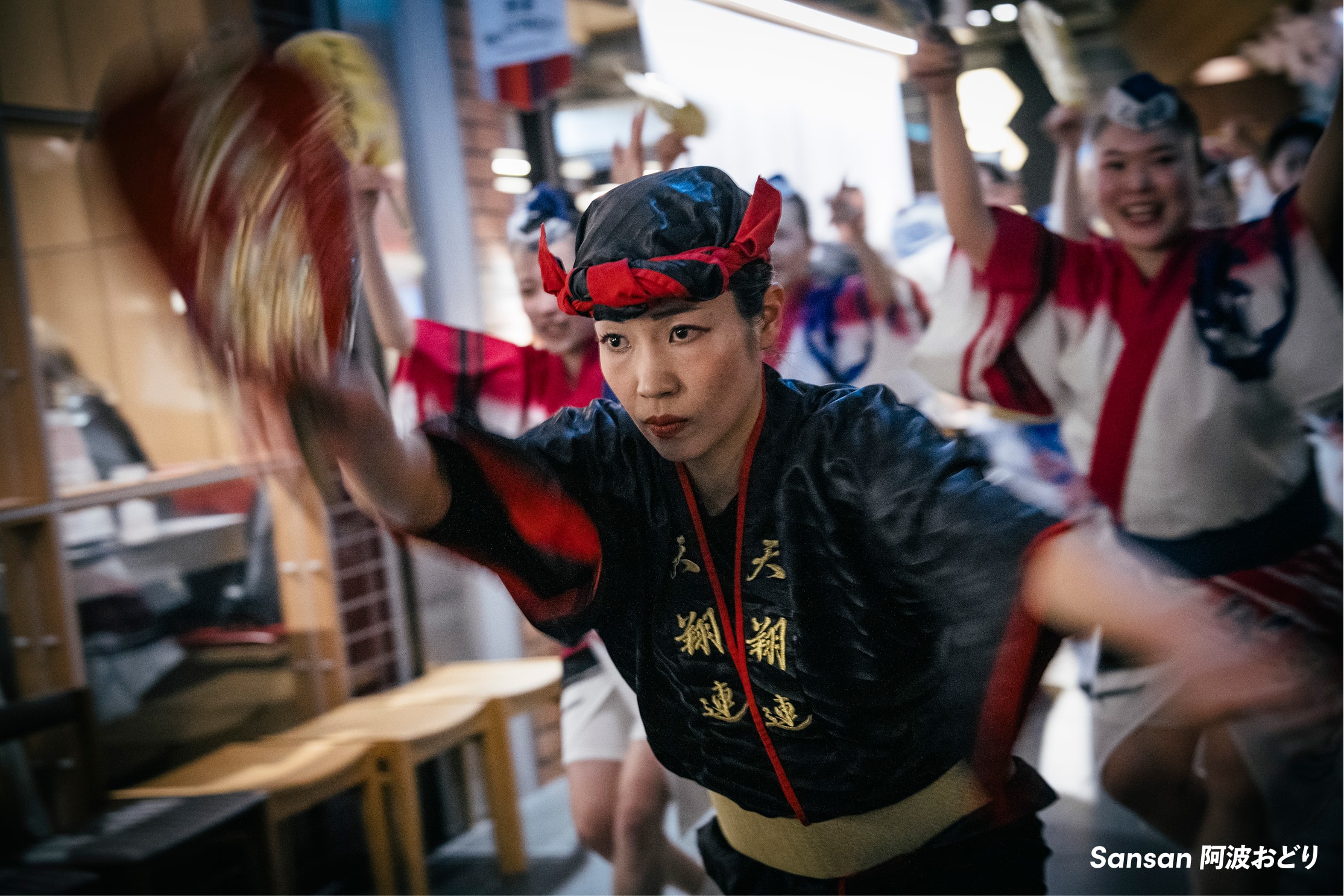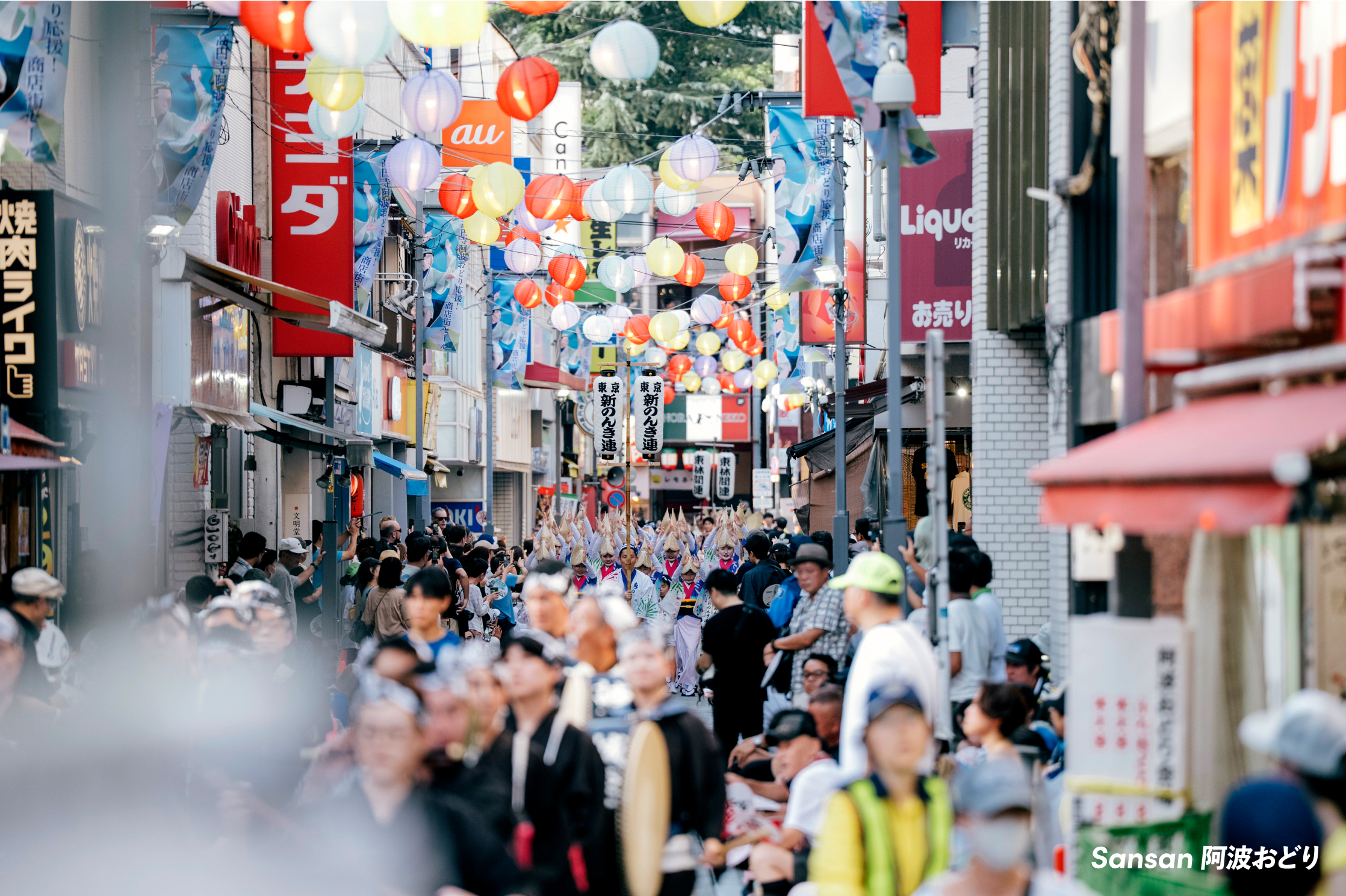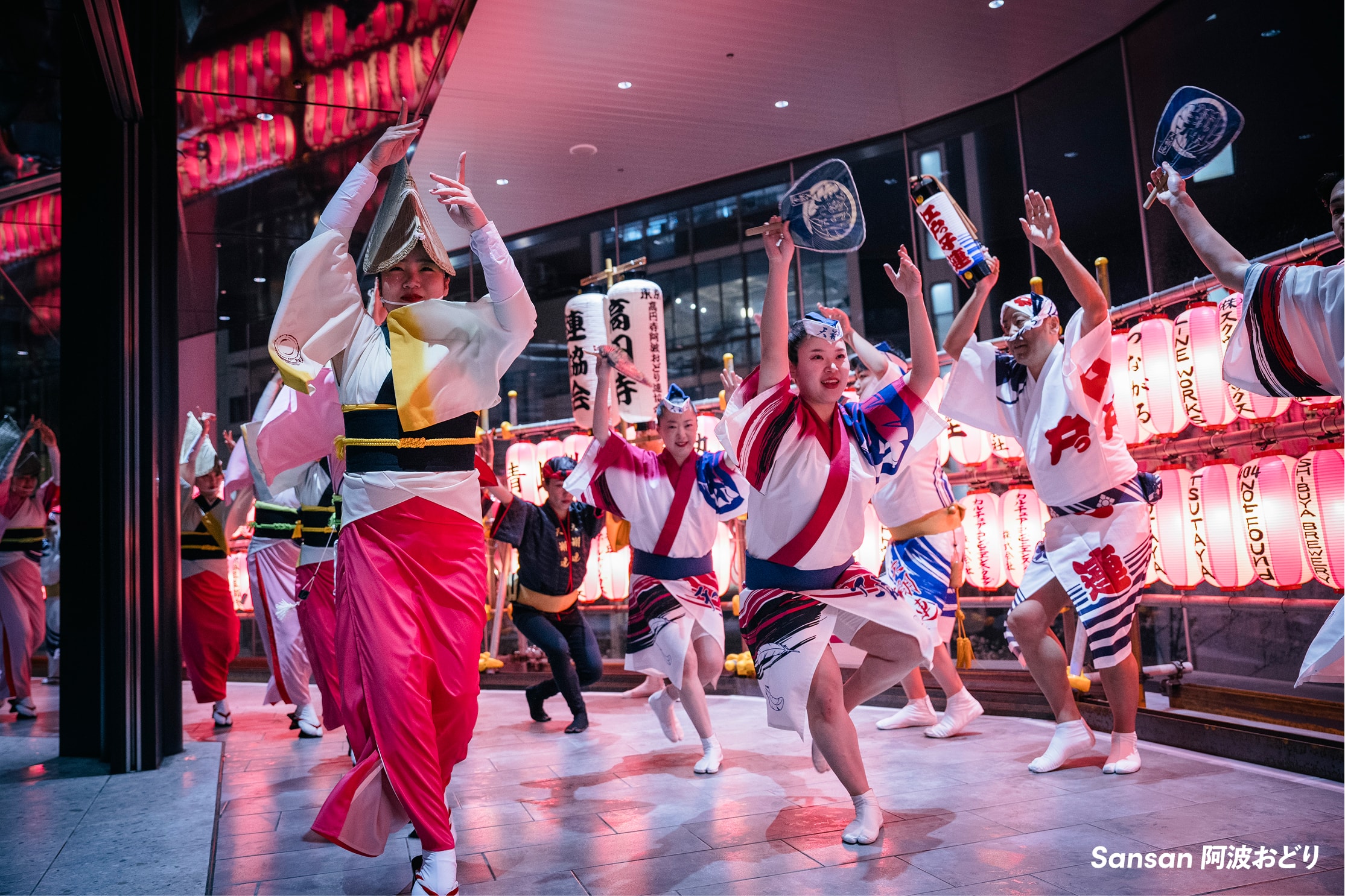2024年11月、Sansanは本社移転先である渋谷サクラステージの開業を祝い、「渋谷阿波おどり powered by Sansan」を開催。日本三大阿波おどりである、徳島・高円寺・南越谷からそれぞれの選抜連/合同連が演舞を披露するほか、家族で楽しめる縁日や渋谷サクラステージ内でのフードコートとの連動企画を実施し、渋谷のまちに新たなにぎわいと出会いを創出しました。