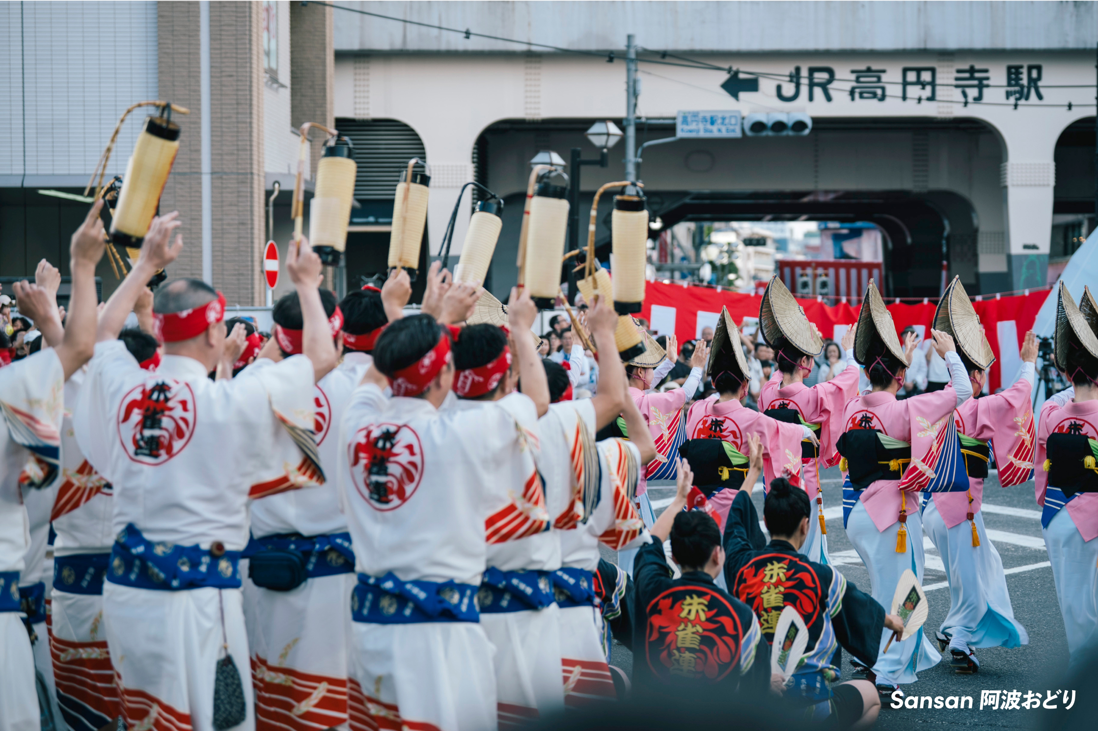 2025年8月に開催された「第66回東京高円寺阿波おどり」に、Sansanは協賛企業として参加。演舞場の一つである「純情演舞場」にバルーンアーチを設置するほか、ユーザーや地域関係者を招いた観覧企画も実施。出会いの熱気に満ちたこの場を、文化とビジネスが交差する新たな出会いの舞台として後押ししました。