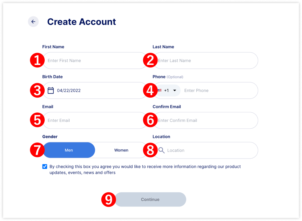 - ⑥ 電話番号 ※ 090-0123-4567の場合、+81-90-0123-4567