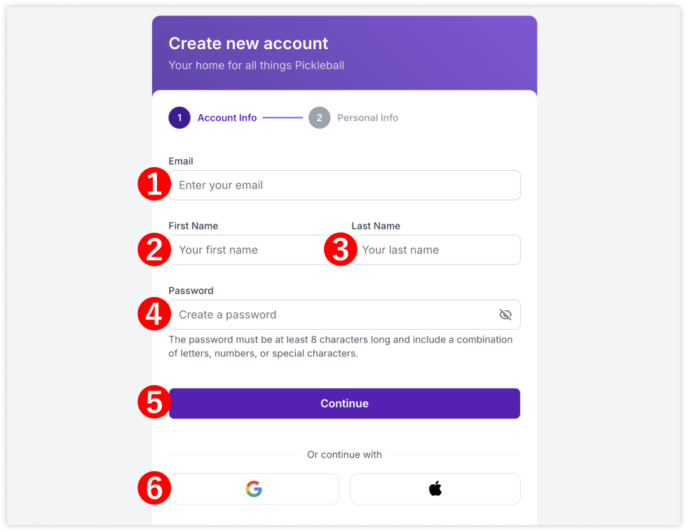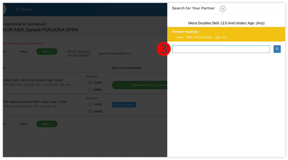 ❶Pickleball Tournament.comにアクセスして必要情報を英語で入力