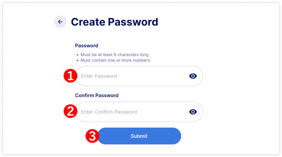 - ① パスワードを記入 ※ 半角英字と数字を組み合わせた6文字以上