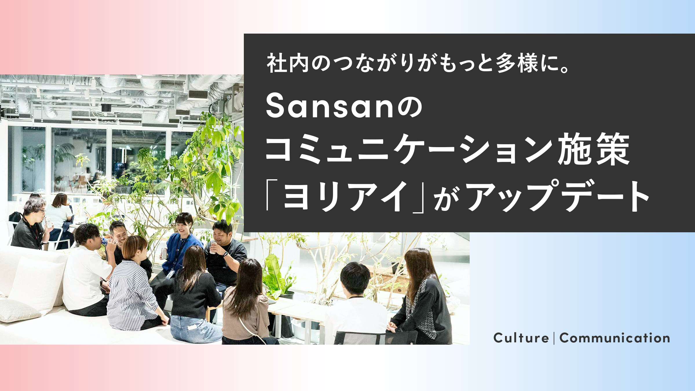 Sansanが掲げるミッション「出会いからイノベーションを生み出す」は、社外との関係だけでなく、社内の出会いや対話からも育まれるものです。ヨリアイは、その考え方を社内カルチャーとして根づかせる取り組みのひとつです。
