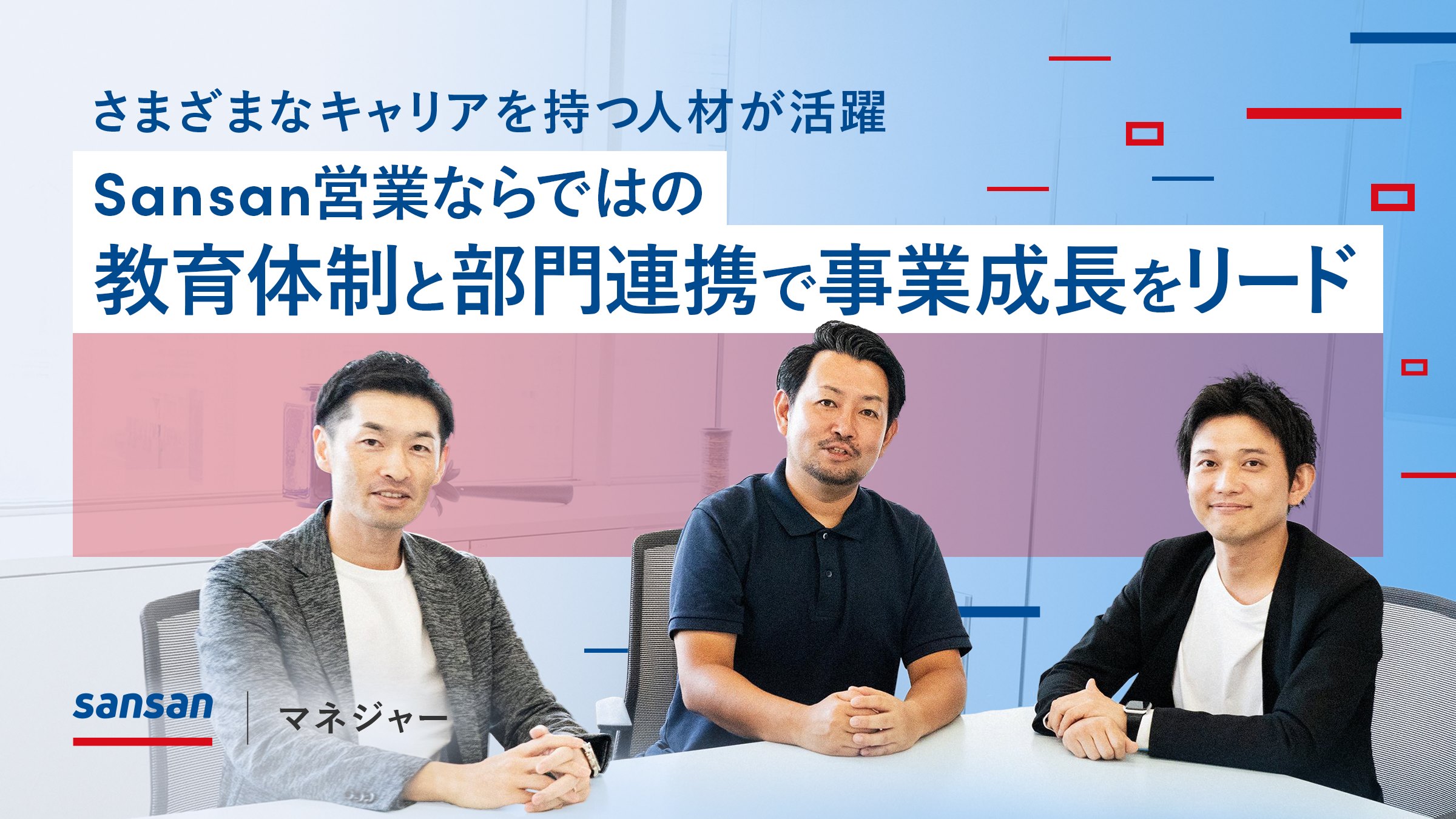 Sansanは現在、急拡大のフェーズにあります。その中で活躍できるのはどんな人物なのでしょうか。今回は営業部門に焦点を当て、インサイドセールスを担うセールスディベロップメント部の部長 原田と、フィールドセールスを担うSMB営業部の部長 早川に話を聞きました。HRBP(※1)として組織戦略を担う梅田が聞き手となり、Sansanの営業部門のカルチャーや、今のフェーズだからこそ得られる経験について深掘りします。