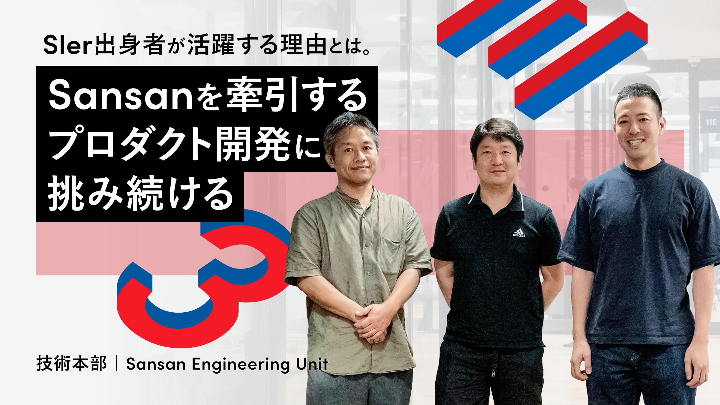 営業DXサービス「Sansan」の開発部門では、多種多様なキャリアやバックグラウンドのメンバーが活躍しています。各メンバーが持つ異なる知見や強みを活かしながらサービスの進化や顧客の事業成長に貢献しているのです。そうしたなかで、SIer出身者が活躍していることもSansan Engineering Unitの特徴です。今回は部長の笹川裕人とSIerで働いた経験を持つProduct Enhancementグループの藤田正訓、早川弘通に話を聞きました。