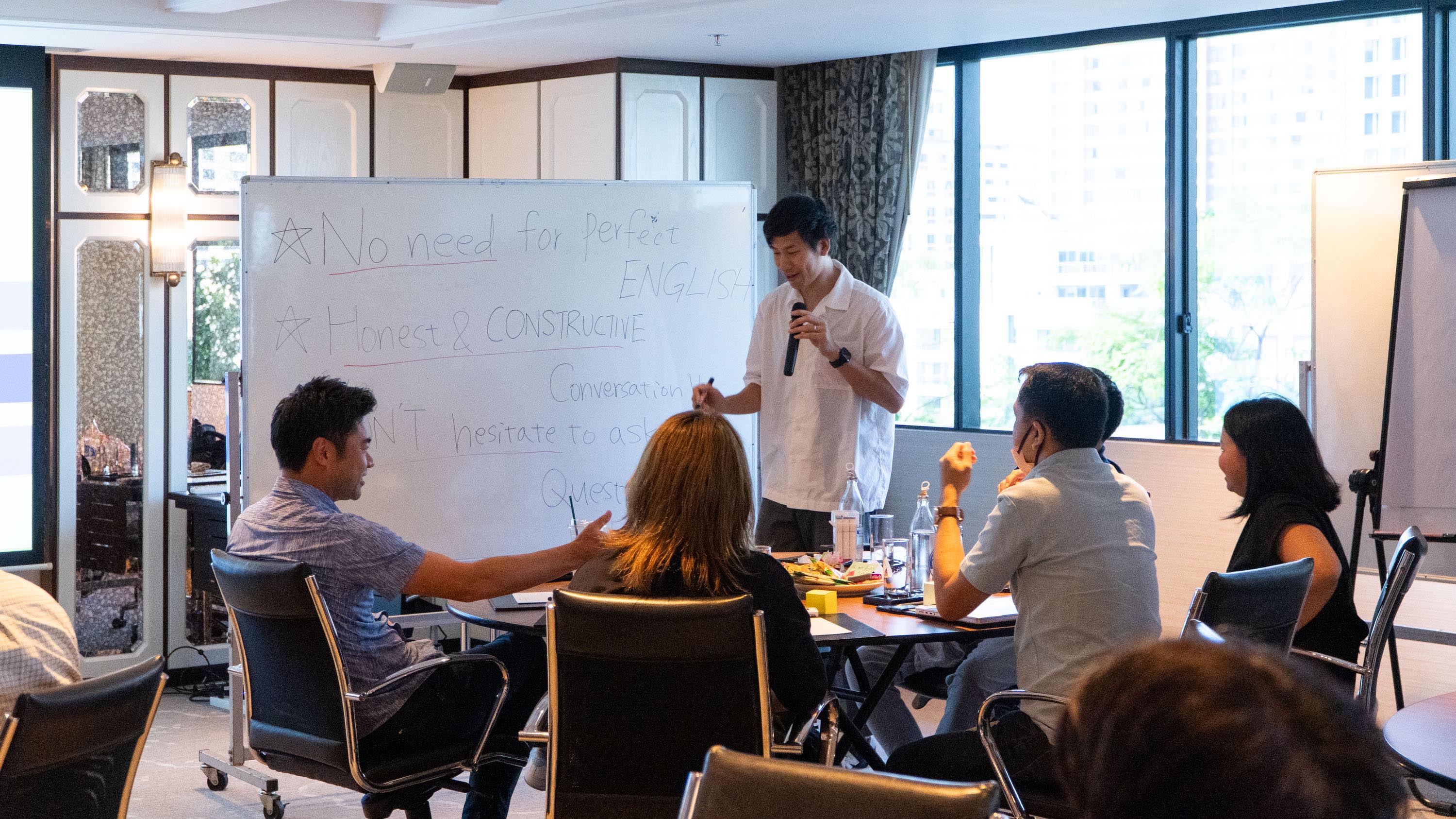 イベントは、お互いの状況や気持ちを共有するアイスブレイクから始まりました。参加者全員で「No need for Perfect English(完璧な英語は不要)」や「Open and constructive conversation(オープンで建設的な対話)」といったグラウンドルールを決めたことで、言語や文化の違いを越えて意見を交わせる雰囲気に。会場全体がほぐれ、これからの対話への期待感が一気に高まっていきます。