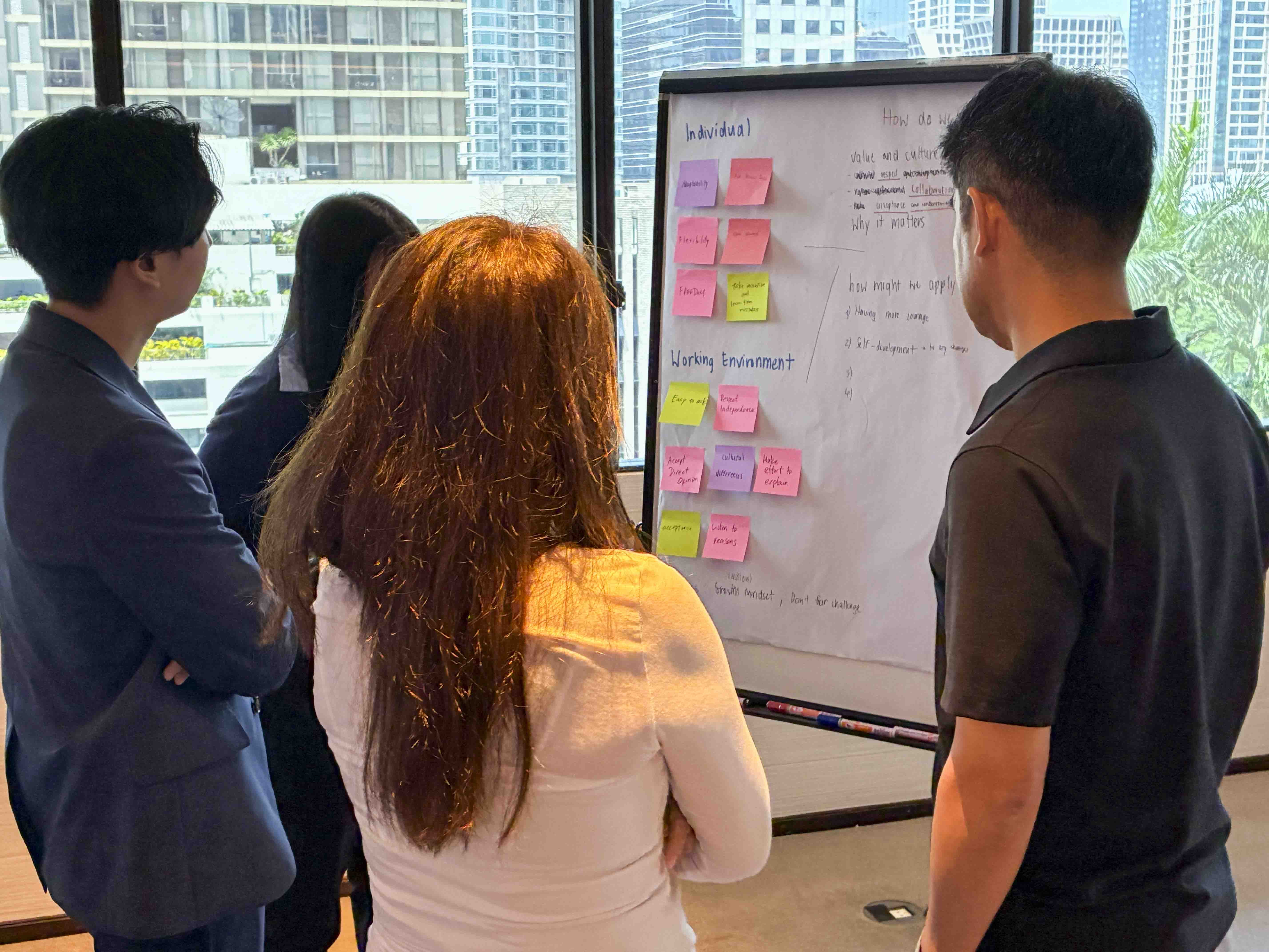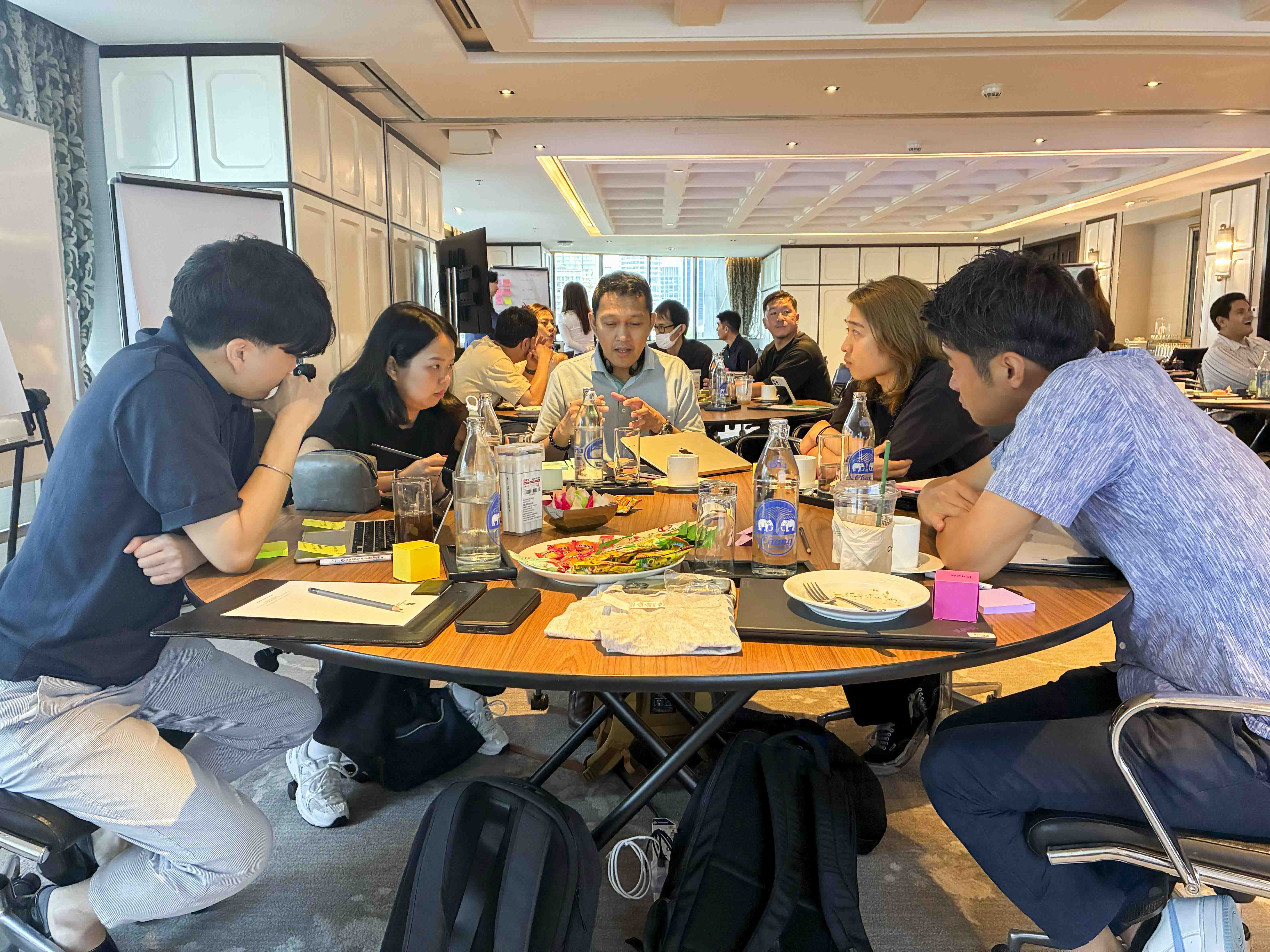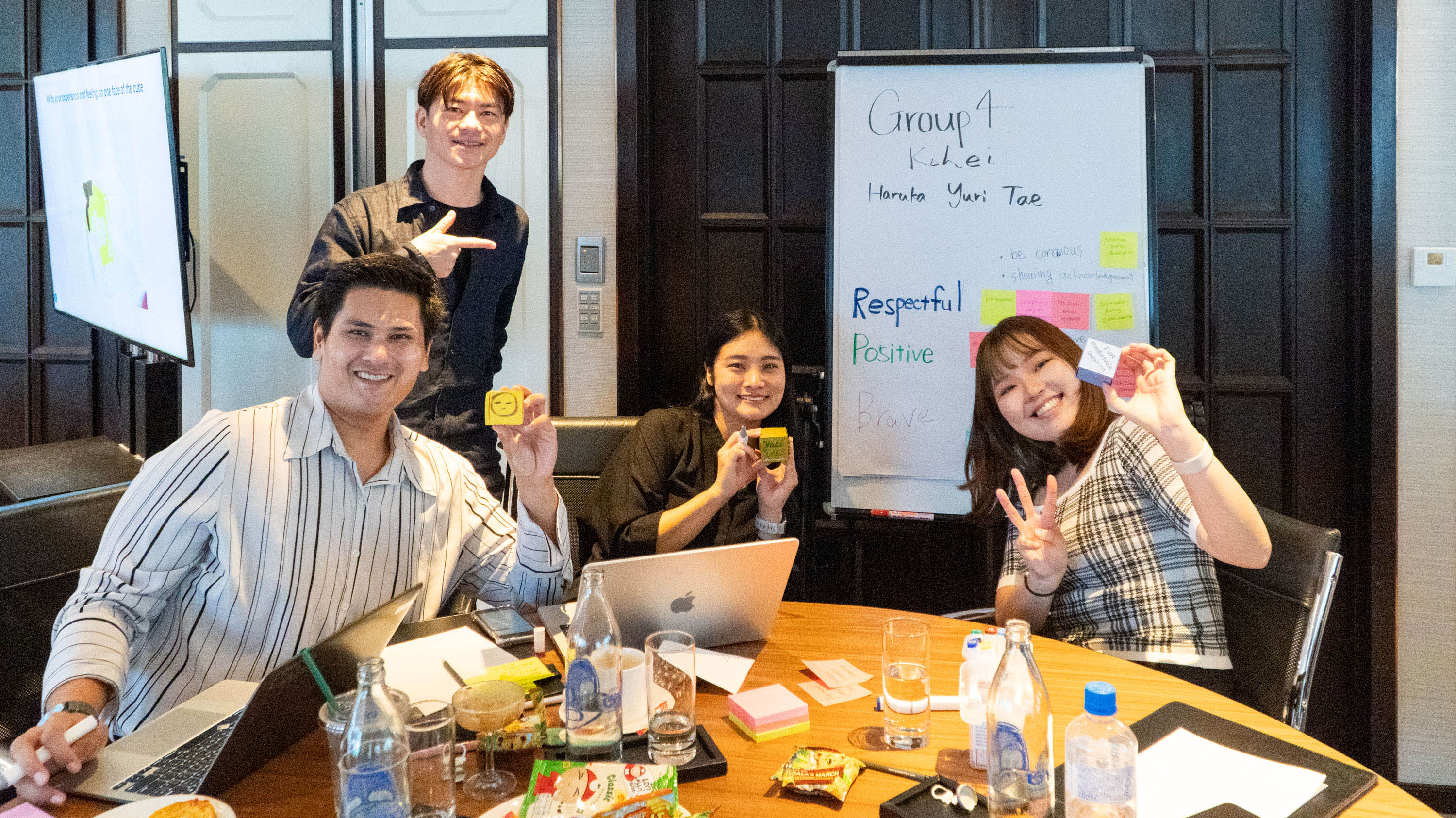 ロープレを経て多様な価値観を再認識した上で、次に取り組んだのは「Sansan Globalとして大事にしたいバリュー」の言語化です。日本、タイ、シンガポール、それぞれの拠点や職種が入り混じったチームで議論が繰り広げられました。