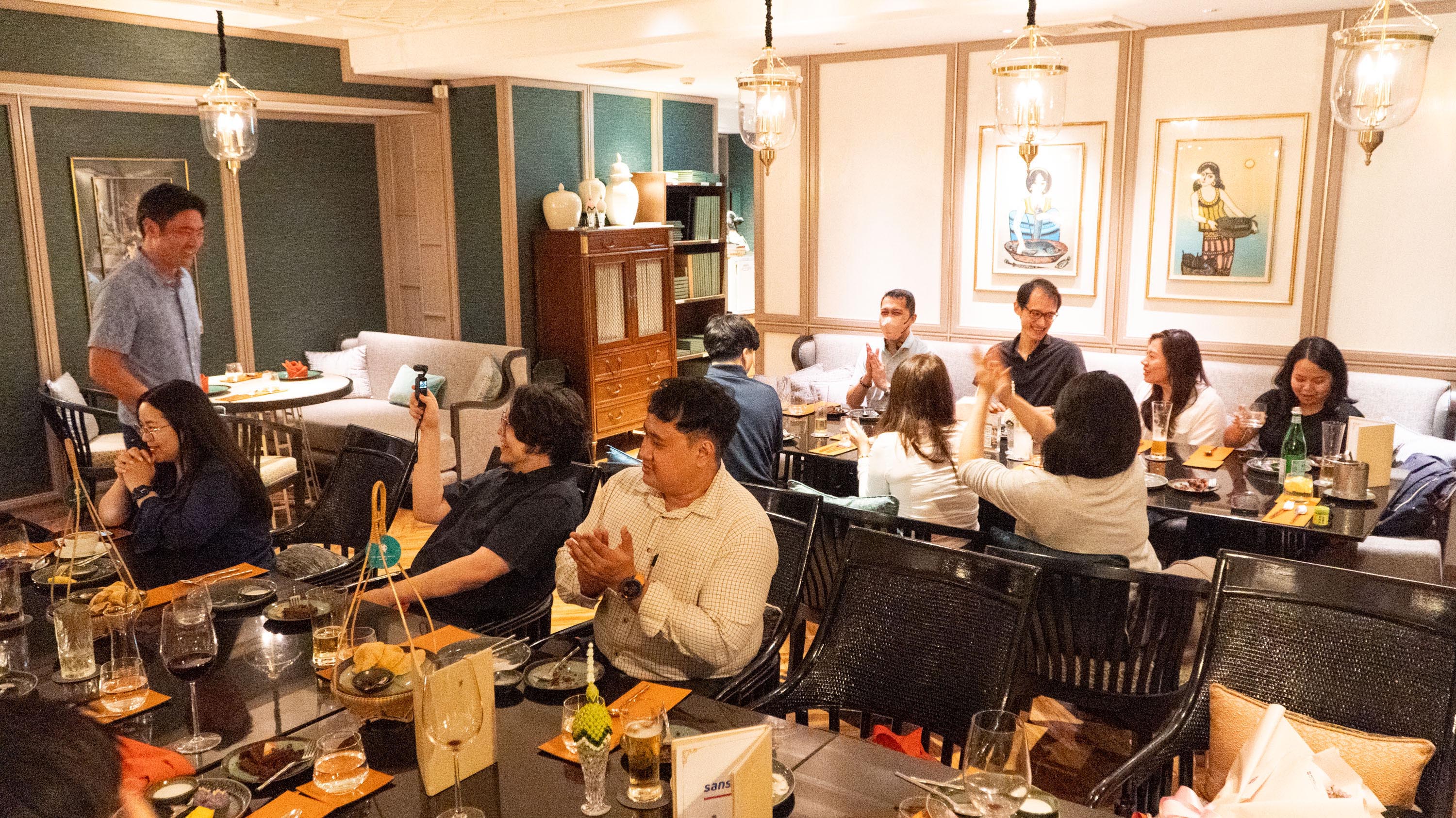 イベントの最後は、富岡の乾杯で懇親会がスタート。食事を共にしながら笑顔と会話が絶えず、国境を越えたメンバー同士のつながりがぐっと深まりました。一日の締めくくりは、福田による言葉。会場には「ここからまた一緒に進んでいこう」という前向きな空気が満ちていました。