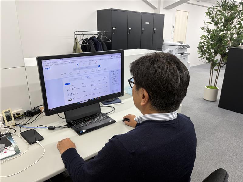 東京ダイヤモンド工具製作所の担当者が自社のEight画面を確認する様子