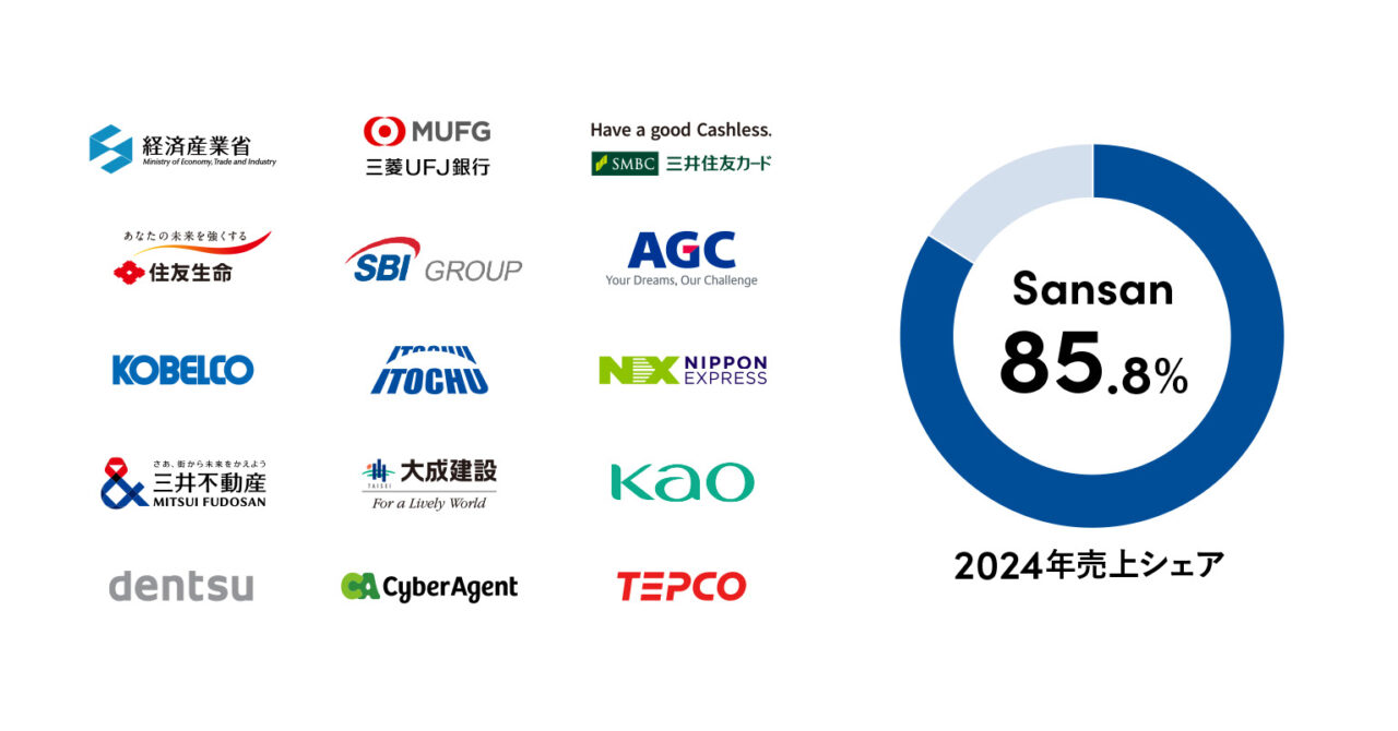 働き方を変えるAXサービスを提供するSansan株式会社は、株式会社シード・プランニングが実施した法人向け有料名刺管理サービスの市場動向調査において、ビジネスデータベース「Sansan」の売上シェアが85.8%を占め、13年連続となるシェアNo.1を獲得したことを発表します(※1)。