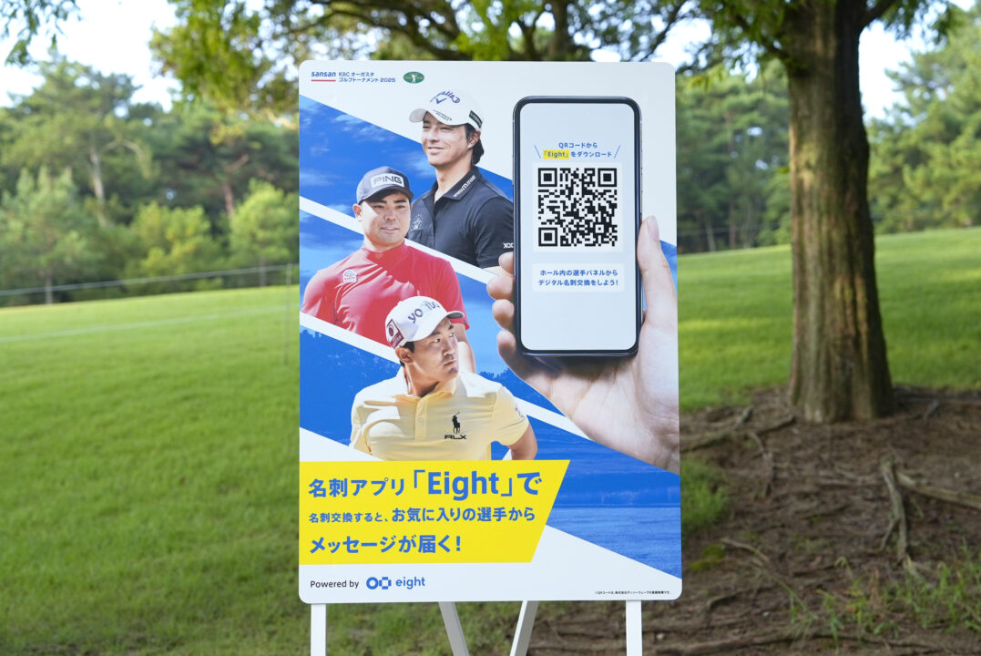 出場選手とつながることができるデジタル名刺交換の機会を提供しました。会場の展示パネル、またはテレビ放送やYouTubeのライブ配信映像に表示されるQRコードを読み取ることで、名刺アプリ「Eight」でのデジタル名刺交換が可能となるコンテンツです。