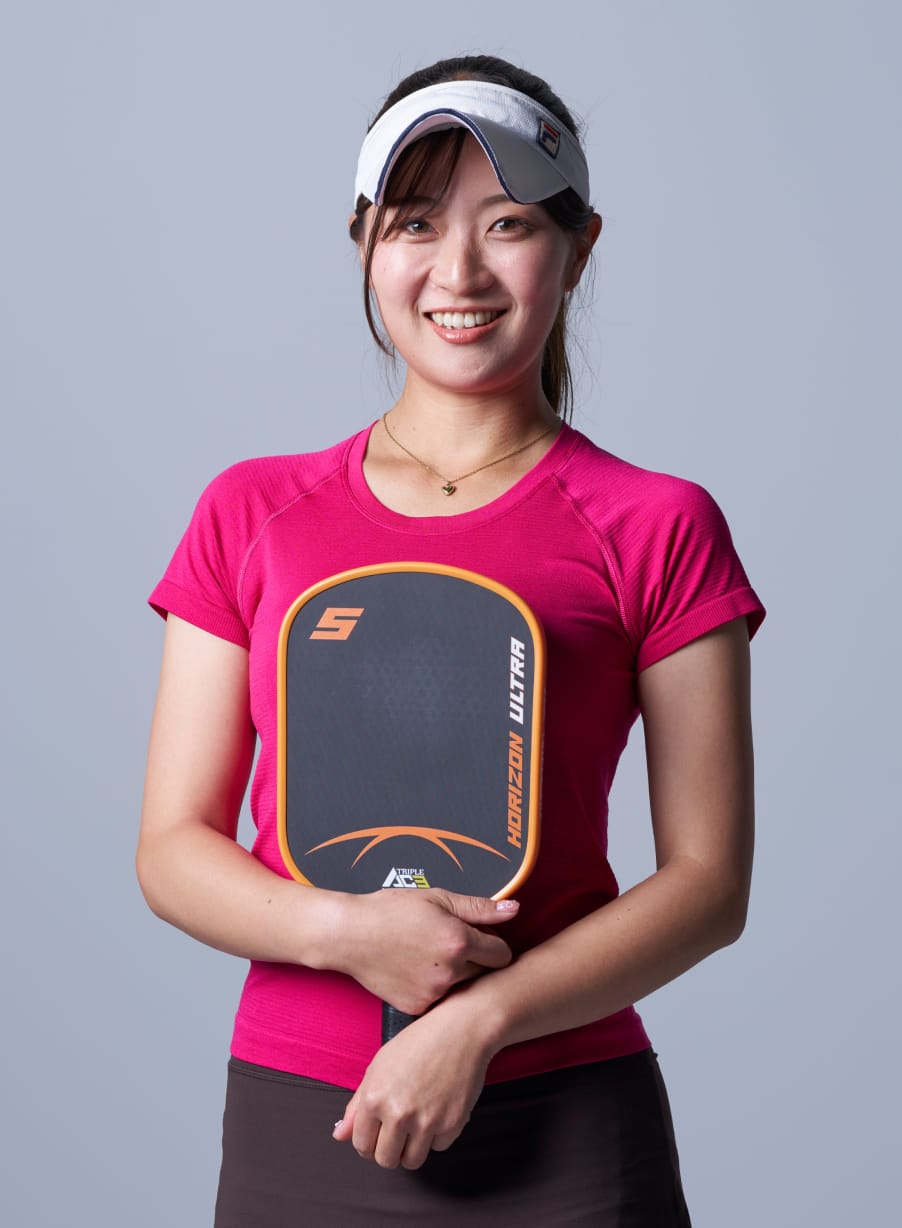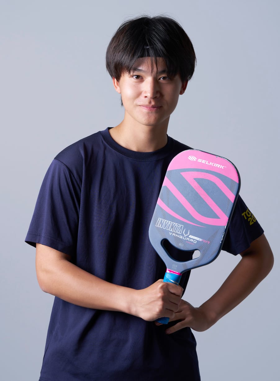 テニスを引退して社会人になるタイミングで、もっとレベルの高い環境でピックルボールを上達させたいと考え、このプロジェクトにチャレンジしました。プレー面ではアグレッシブで積極的な姿勢を魅せられる選手になりたいです。また、人としてもいろいろな人とコミュニケーションを取り、ポジティブな言動ができる選手を目指しています。今後は海外のトップ選手に良い勝負ができるようになり、そこを乗り越えて勝利を掴む選手になりたいです。得意なプレーは、練習を重ねているドロップです。