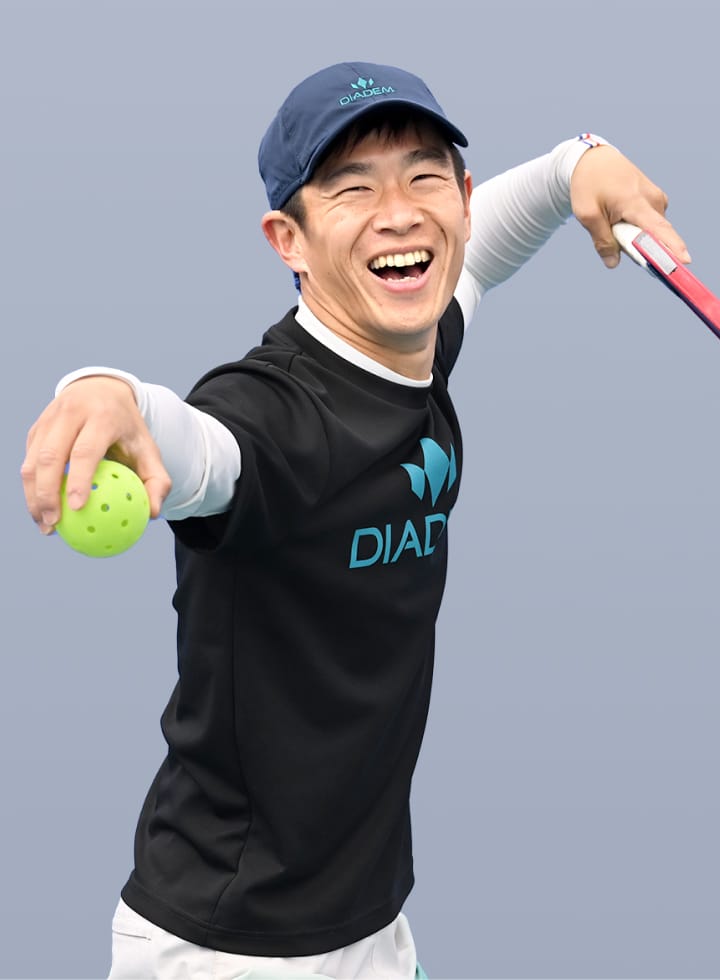 これまでピックルボールを本格的に練習する機会がなく、もっと競技として深めてみたいと思っていたところ、知り合いからこのプロジェクトを紹介され、挑戦を決意しました。自分が勝つだけでなく、見ている人も楽しませ、喜ばせられるプレーヤーになりたいと考えています。試合を通じて、多くの人にピックルボールの魅力を伝えていきます。目標は、世界の大会でチャンピオンになること。ピックルボールはアジア人にも大きなチャンスがある競技だからこそ、果敢にチャレンジしていきます。得意なプレーは、テニスのパワーを活かしたボレー。攻撃的なプレースタイルで、勝利を目指します。